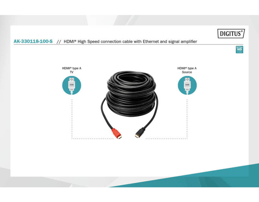 Кабель мультимедийный HDMI M to HDMI M 10.0m 4K Amplifier Digitus (AK-330118-100-S)