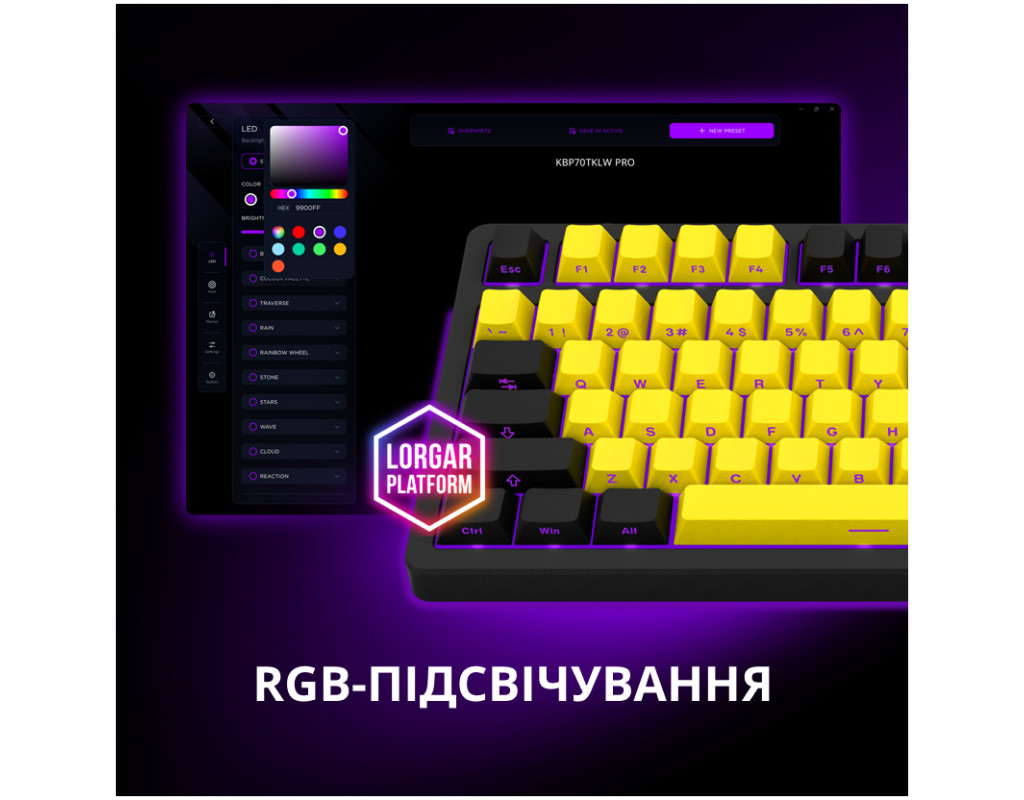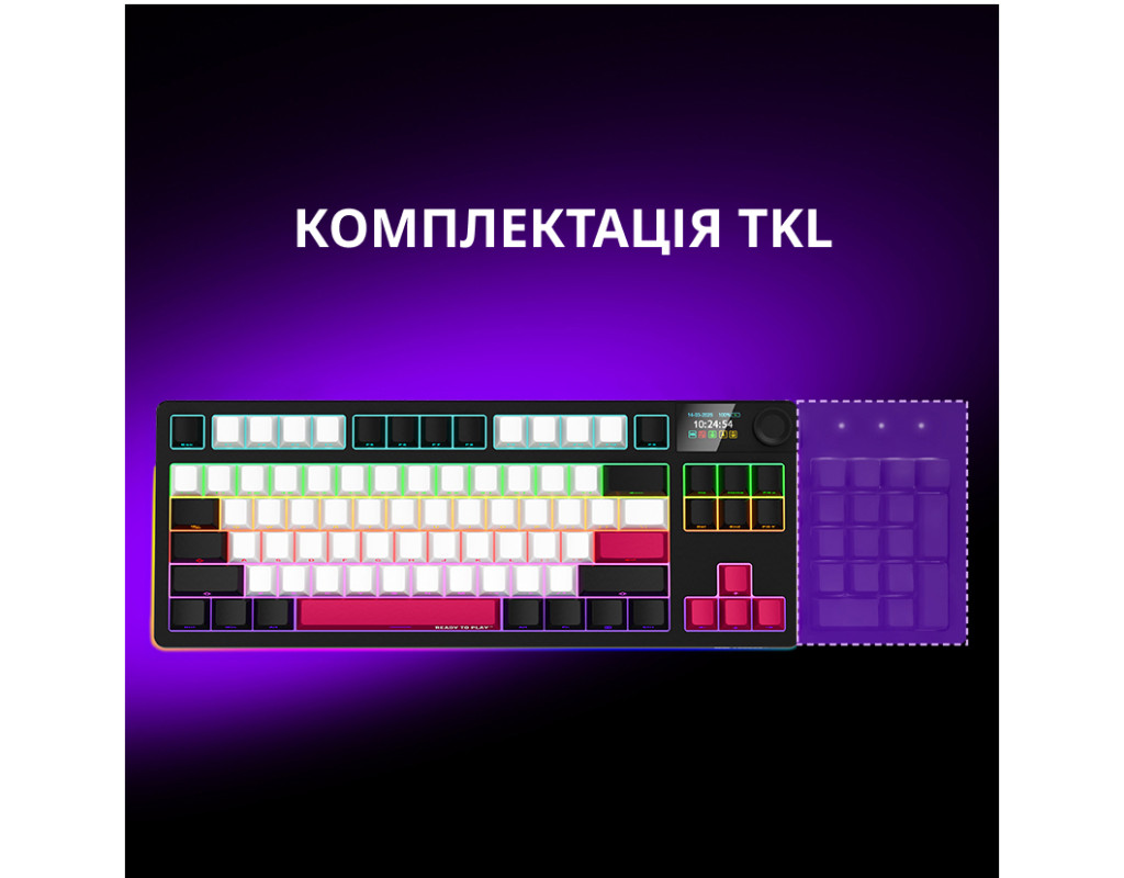 | Клавиатура Lorgar KBP70TKLW Wireless TKL Mechanical Pro UA Black/Red является воплощением совершенства для геймеров и профессионалов, которые стремятся ощутить истинный комфорт, надежность и стиль. Компактное устройство формата Tenkeyless соответствует самым высоким стандартам, гарантируя качество и удобство в каждом нажатии. Основой этой клавиатуры являются линейные переключатели Lorgar Toxic Purple, которые выдерживают до 50 миллионов нажатий, обеспечивая плавность и тишину работы. Благодаря гаскетному монтажу, клавиши имеют мягкий ход и снижают уровень шума, что делает их идеальными для длительных игровых сессий или работы. Клавиатура предлагает впечатляющую гибкость подключения — поддерживает три режима: Bluetooth 5.0, 2.4 ГГц, а также проводное подключение по USB-C, что позволяет легко переключаться между различными устройствами. Это делает Lorgar KBP70TKLW идеальным выбором для тех, кто ценит мобильность и удобство, поскольку клавиатура также совместима с различными ОС Windows. Встроенный аккумулятор емкостью 7200 мАч предоставляет возможность до 153 часов автономной работы, исключая необходимость в частой зарядке. Клавиши из высококачественного PBT-пластика имеют боковую гравировку, которая обеспечивает дополнительную износостойкость и долговечность. Одной из ключевых особенностей является адаптивный RGB-дисплей и смарт-регулятор, которые не только добавляют функциональности, но и позволяют полностью настраивать подсветку и мультимедиа в соответствии с собственными предпочтениями. Кроме того, горячесменяемые переключатели упрощают процесс замены свитчей без необходимости пайки, предоставляя пользователю свободу персонализации на новом уровне. Клавиатура оснащена дополнительными возможностями, такими как программируемые клавиши, сменные клавиши, регулируемые ножки для настройки угла наклона, а также удобные элементы управления громкостью и подсветкой. Все это направлено на создание идеальной игровой и рабочей атмосферы. Lorgar KBP70TKLW — это не просто инструмент для ввода текста, это идеальный выбор для тех, кто стремится к балансу между компактностью, производительностью и эстетикой. Она станет вашим незаменимым компаньоном на пути к победам в виртуальных мирах и эффективной работе в реальной жизни. |