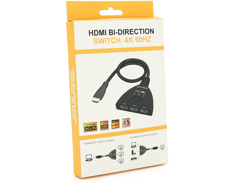 Розгалужувач HDMI 1=>3 порти, 4К, кабель 30см, Box