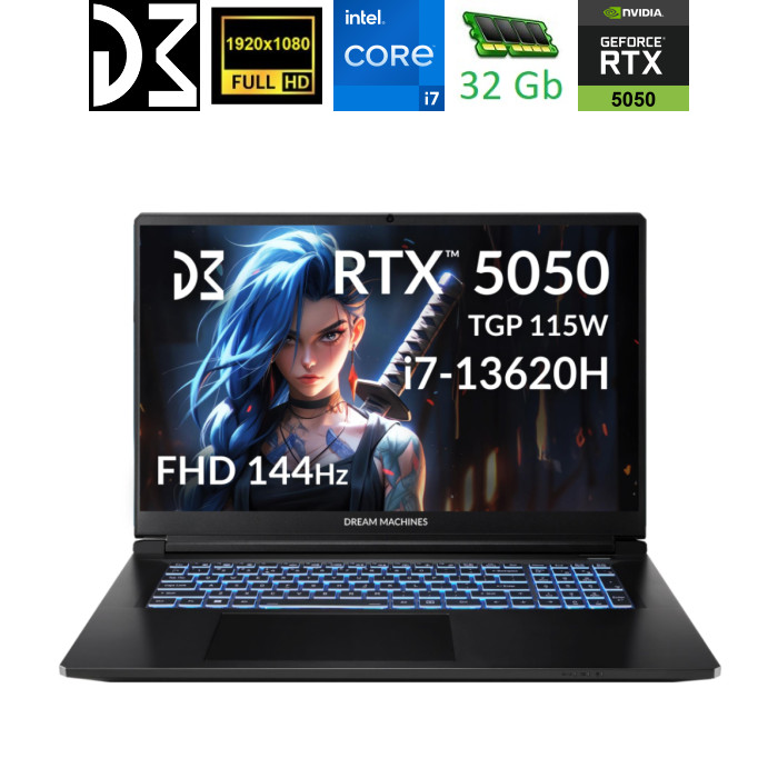 Масштабна потужність для геймінгу DREAM MACHINES RG5050-17UA28 — це ігровий ноутбук, який поєднує продуктивність високого рівня та великий 17,3-дюймовий екран. Він створений для тих, хто хоче зануритися у віртуальні світи на повну й отримати від портативного пристрою відчуття роботи зі стаціонарним ПК. Завдяки масі 2,65 кг ця модель зберігає баланс між мобільністю та масштабністю.