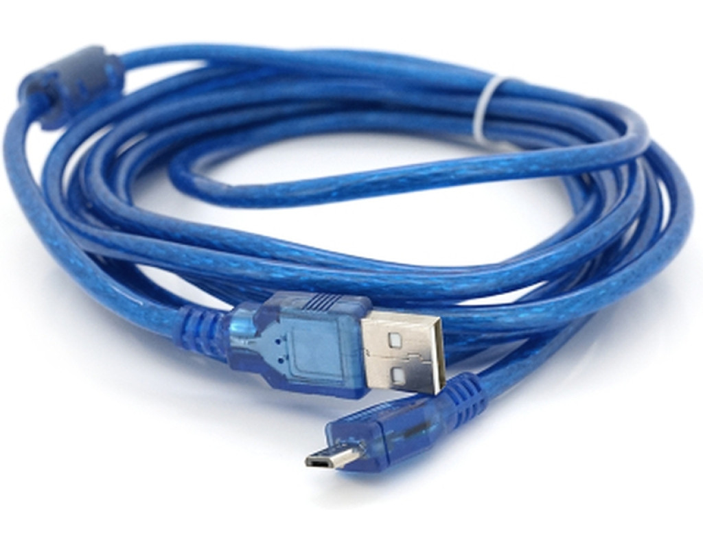 Кабель USB 2.0 с разъемами типа USB Type-A Male (AM) и Micro USB с 5 контактами (Micro 5 pin), длиной 3 метра, прозрачного синего цвета и поставляемый в упаковке, представляет собой стандартный кабель для подключения различных устройств к компьютеру или другим устройствам с USB-портами. Вот основные характеристики этого кабеля: