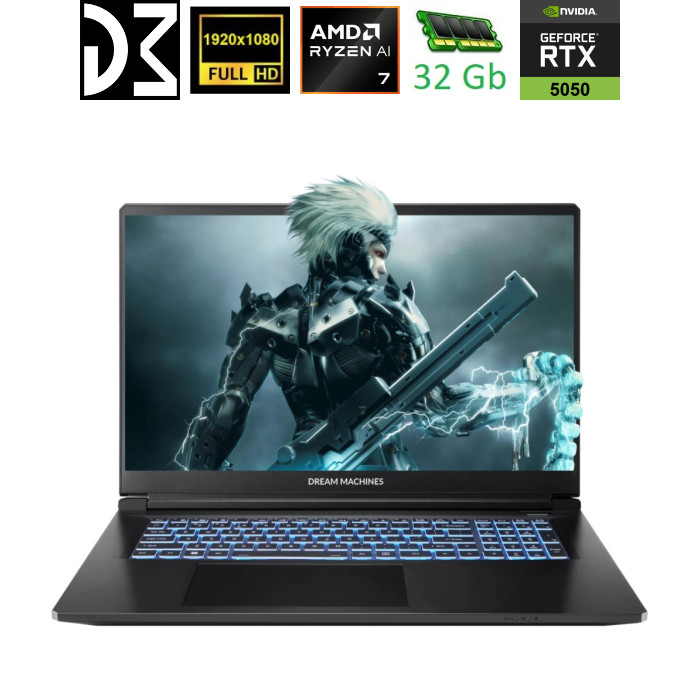 Масштабний формат для гри та роботи DREAM MACHINES RT5050-17UA24 — це ноутбук із великим 17,3-дюймовим дисплеєм, створений для тих, хто цінує простір, деталізацію та продуктивність. Завдяки потужному процесору AMD Ryzen 7 і відеокарті NVIDIA GeForce RTX 5050 цей ноутбук забезпечує стабільність у сучасних іграх і професійних завданнях. Маса 2,8 кг робить його надійною заміною стаціонарного ПК для дому чи офісу.