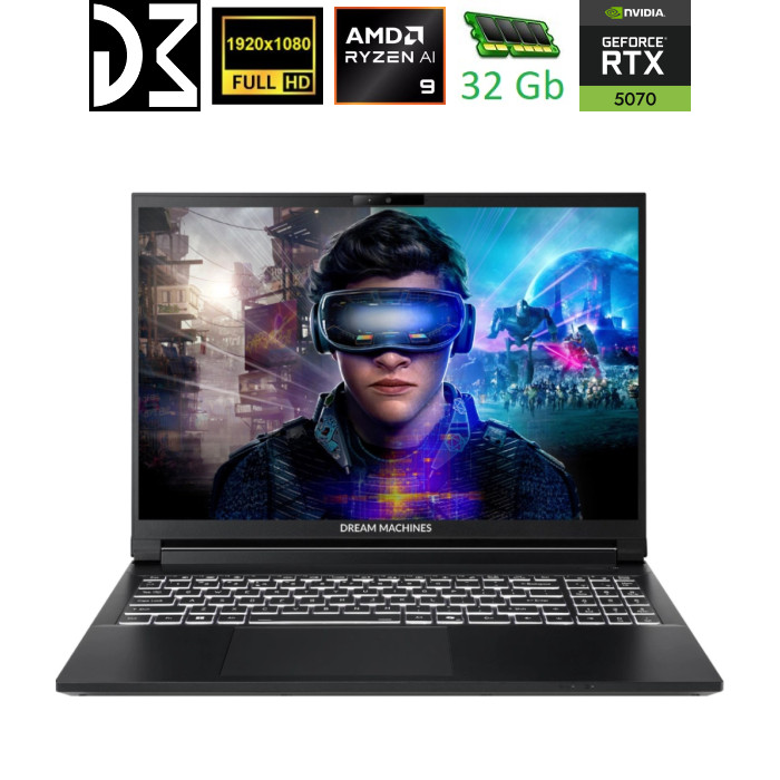 Потужність у компактному форматі DREAM MACHINES RT5070-15UA21 — це ігровий ноутбук, який поєднує сучасні технології, високу продуктивність і зручність 15,6-дюймового формату. При масі 1,99 кг він зберігає мобільність, але водночас має характеристики, що відповідають вимогам кіберспорту та професійної роботи. Підсвічувана клавіатура ENG/UA та стильний корпус роблять його універсальним інструментом для геймерів і творців.