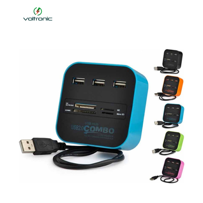 Универсальный хаб-кардридер CUB3 с тремя портами и черным корпусом в блистерной упаковке. |