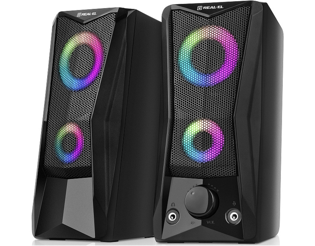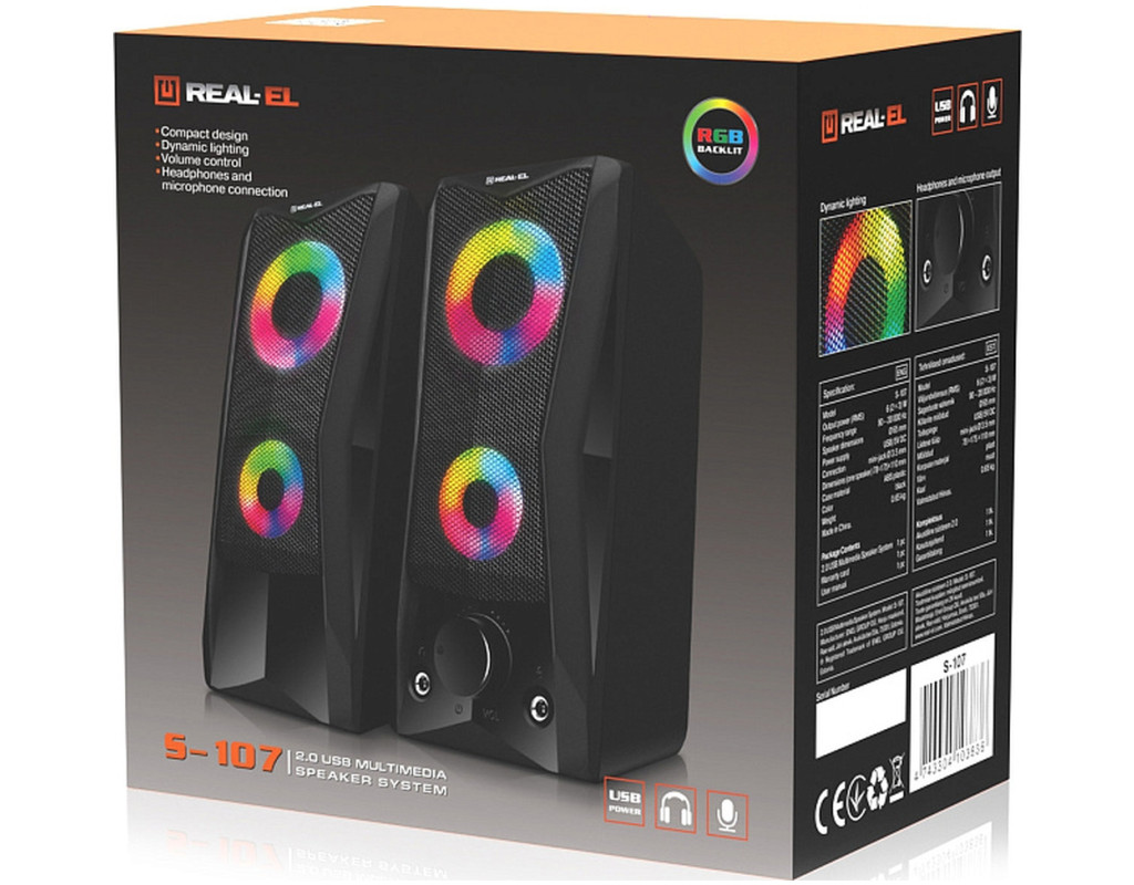 | Акустическая система REAL-EL S-107 USB Black (EL121100017) — это сочетание стильного дизайна и качественного звучания в одном устройстве. Эта мультимедийная акустическая система является идеальным решением для тех, кто ценит компактность и эффективность в использовании. Легко обеспечьте озвучивание компьютера или ноутбука с помощью этой усовершенствованной системы. REAL-EL S-107 использует проводное подключение для передачи сигнала, а благодаря стандартным интерфейсам USB и разъемам mini Jack 3.5 mm она совместима с широким спектром устройств. Это делает эту акустическую систему универсальной, так как она может подключаться к различным источникам аудиосигнала, таким как компьютеры, ноутбуки и мобильные устройства. Питание системы осуществляется через USB-порт от ПК, ноутбука или блока питания, что делает ее чрезвычайно удобной в использовании. Мощность колонок составляет 6 Вт, что обеспечивает чистое и четкое звучание даже при постепенном увеличении громкости. Акустическая система создана для того, чтобы вы наслаждались качественным звуком в любом месте. Эта модель разработана для размещения на полке, что экономит пространство и не мешает интерьеру. Легкость и малый вес (всего 0.65 кг) делают ее мобильной и удобной для переноса. Материал корпуса выполнен из пластика, что обеспечивает прочность и долговечность. Среди особых преимуществ выделяется удобный регулятор громкости, который позволяет быстро и интуитивно настроить звук в соответствии с вашими предпочтениями. Дополнительные разъемы для подключения наушников и микрофона расширяют функциональные возможности устройства, делая его идеальным выбором не только для развлечений, но и для работы с мультимедиа или проведения конференций. Динамическая подсветка системы придаёт ей не только эстетическую привлекательность, но и создаёт определённую атмосферу во время работы или отдыха. Она не только звучит, но и выглядит современно и стильно, привлекая внимание яркими эффектами подсветки. Выбирая REAL-EL S-107, вы получаете устройство, которое сочетает в себе качество, функциональность и современный дизайн, удовлетворяя все требования к безупречному звуку. Это идеальный выбор для ваших ежедневных нужд в воспроизведении музыки, фильмов или игр. |