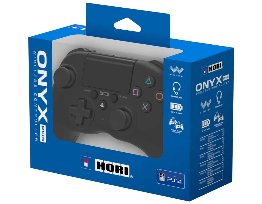 Совместимость с ПК делает этот геймпад универсальным. Подключайте гарнитуру через 3.5 мм разъем и общайтесь с другими игроками в ваших любимых онлайн играх. Благодаря беспроводному подключению и встроенному аккумулятору, вы сможете играть с любого удобного места в доме, а встроенный аккумулятор обеспечит 6+ часов комфортной игры. Официально лицензированный Sony. Особенности товара Беспроводной геймпад HORI Onyx+ для PlayStation 4