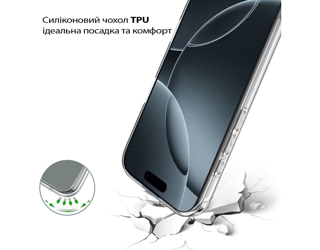 | "Тонкий і еластичний силіконовий чохол забезпечує надійний захист вашого смартфона від механічних пошкоджень, запобігаючи появі подряпин на корпусі. Завдяки високій якості матеріалу, чохол зберігає свою цілісність — він не рветься та не тріскається навіть при тривалому використанні. Чохол легко встановлюється, щільно прилягає до поверхні смартфона, не залишаючи повітряних зазорів, які могли б накопичувати пил, бруд або вологу. Легкий і непомітний, він не додає зайвого об'єму чи ваги вашому пристрою, забезпечуючи надійний захист від ударів, пошкоджень і вологи. Усі вирізи в чохлі точно відповідають роз'ємам і функціональним кнопкам смартфона, що гарантує зручне користування в будь-яких умовах. Силіконове покриття не ковзає, щільно облягає металевий корпус телефону та не перешкоджає доступу до роз'ємів для зарядки, USB-кабелю, гарнітури чи сканера відбитків пальців. Цей силіконовий чохол стане ідеальним вибором для тих, хто шукає стильний і практичний аксесуар для свого смартфона." |