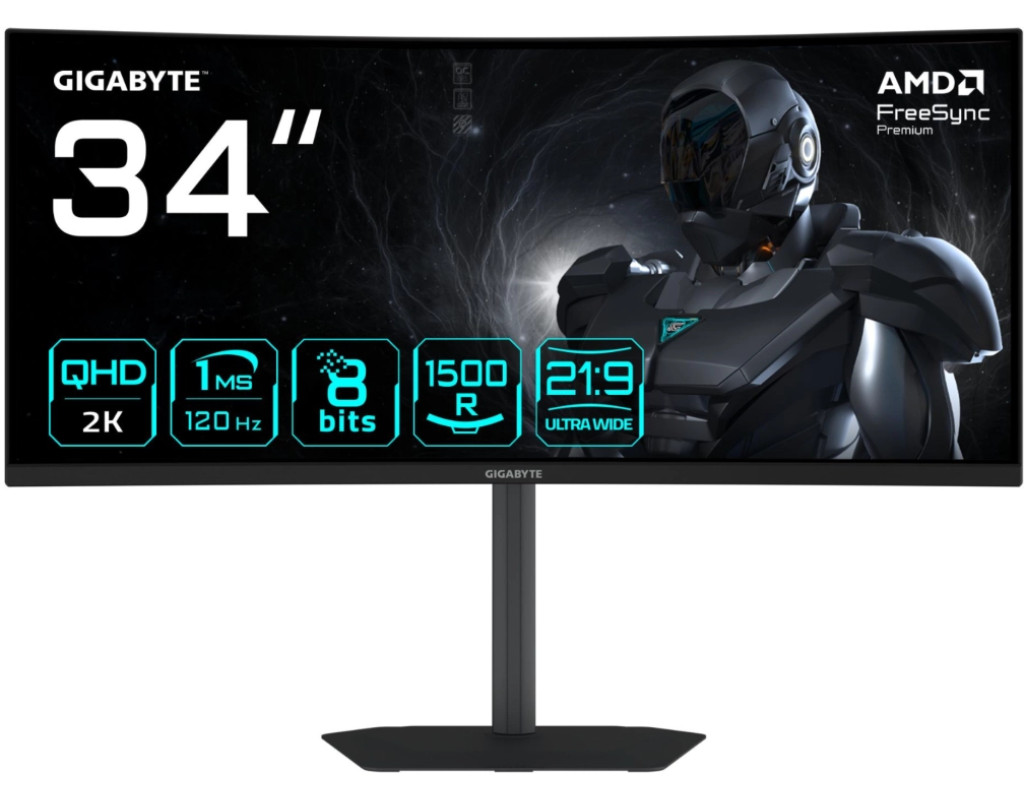 GIGABYTE GS34WQCA — це 34-дюймовий ігровий монітор із вигнутим екраном формату 21:9, який створює ефект повного занурення у віртуальний світ. Завдяки роздільній здатності 3440×1440 і співвідношенню сторін 21:9 ви отримуєте більше простору на екрані, що особливо важливо в динамічних іграх і під час роботи з кількома вікнами.