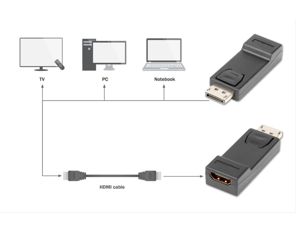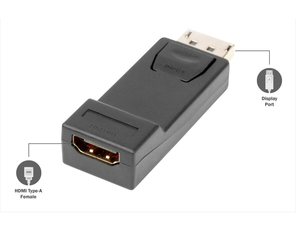 | Адаптер DIGITUS DP 1.1 → HDMI A (M/F) позволяет подключать HDMI-кабель к DisplayPort-интерфейсу видеокарты или ноутбука. Поддерживает Full HD 1080p при 60 Гц, режим DP++ Dual-Mode, имеет никелированные разъемы и надежный формованный корпус. |
