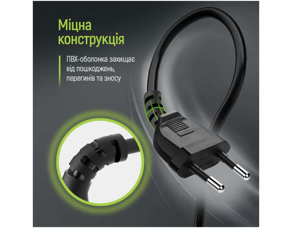 Кабель питания ColorWay C7 – компактное решение для подключения техники с двухконтактным разъемом C7 (IEC 60320) к электросети. Идеально подходит для ноутбуков, игровых приставок, зарядных станций, аудио- и видеотехники, а также других устройств, не требующих заземления. Прочная ПВХ оболочка обеспечивает защиту кабеля от повреждений и износа, а проводник с сечением 2×0.5 мм² гарантирует стабильную и безопасную подачу электроэнергии. Доступный в длинах 2 и 3 метра для комфортного использования в любой среде. Особенности: