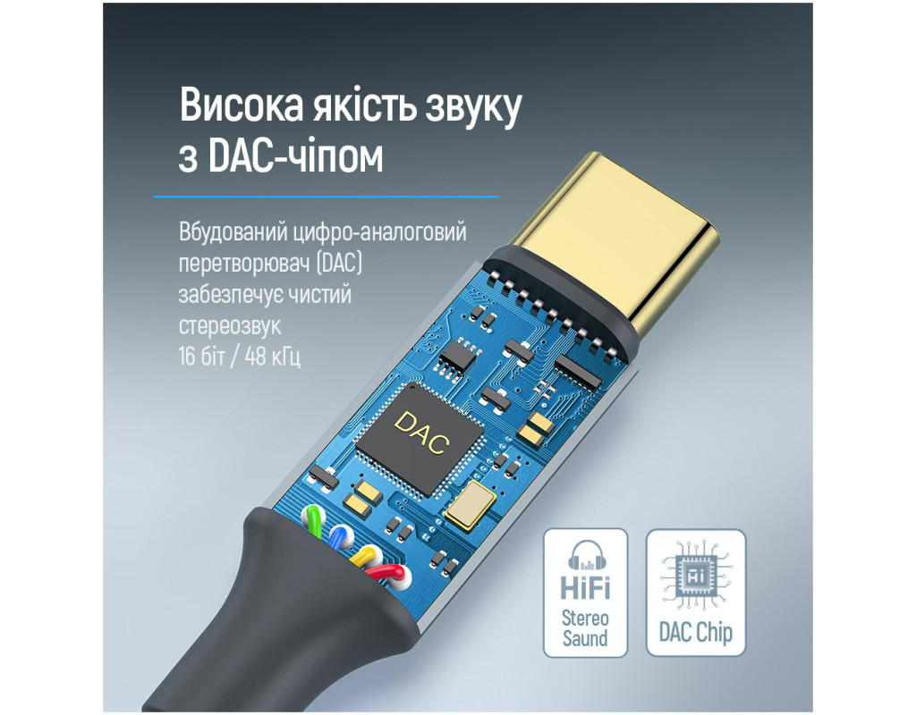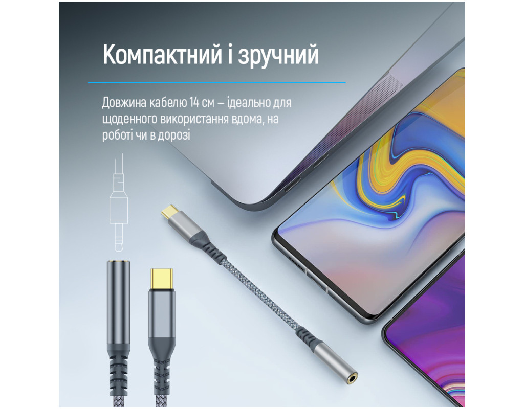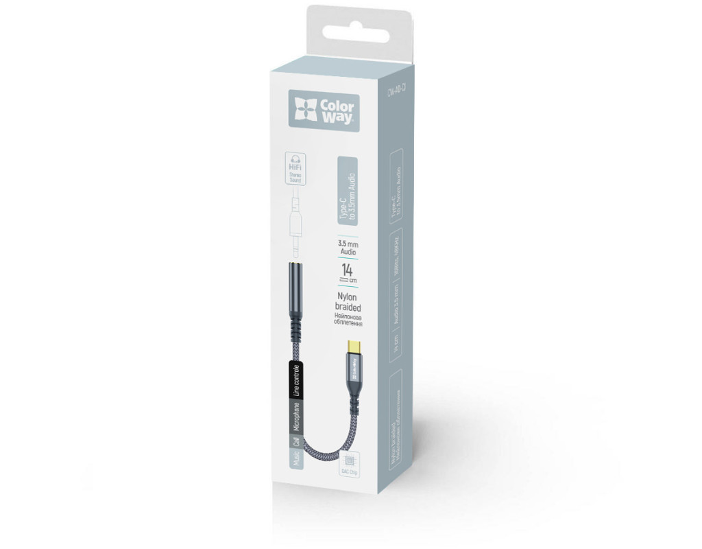 Адаптер ColorWay USB-C to 3.5 мм позволяет подключать наушники, гарнитуры, микрофоны и другие аудиоустройства с разъемом 3.5 мм к смартфонам, планшетам и другим устройствам с портом USB Type-C. Это удобное решение для девайсов без аудиовыхода, что обеспечивает качественный звук, поддержку микрофона и элементов управления.