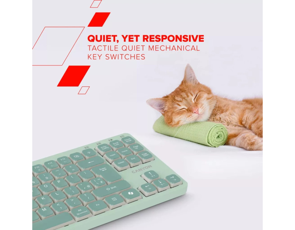 | Клавиатура Canyon OnType 10 – это современное решение для тех, кто ищет идеальное сочетание стиля, функциональности и удобства в использовании. Эта модель отличается механической конструкцией с низкопрофильными клавишами, что обеспечивает исключительно комфортный опыт набора текста и отличную производительность для геймеров. Её формат TKL (tenkeyless) позволяет сэкономить место на рабочем столе благодаря отсутствию цифрового блока, сохраняя при этом все необходимые функции клавиатуры. Эстетика этой клавиатуры выгодно выделяется благодаря стильной цветовой гамме в оттенках лаванды (фиолетовый), которая легко интегрируется в любой современный рабочий или игровой сетап, добавляя ему шарма и изящности. Подключение осуществляется с помощью съёмного USB Type-C кабеля, что обеспечивает надёжную передачу данных и лёгкую транспортировку. Бесшумные тактильные переключатели GX Tactile, используемые в Canyon OnType 10, предлагают идеальный баланс чувствительности и бесшумности, что делает эту клавиатуру отличным выбором для офисной среды или продолжительных рабочих сессий. Её белая подсветка с 19 режимами позволяет настроить освещение в соответствии с вашими предпочтениями, создавая как статические, так и динамические световые эффекты для комфортной работы в условиях недостаточного освещения. Дополнительно, Canyon OnType 10 оснащена 12 мультимедийными клавишами, которые обеспечивают быстрый доступ к управлению музыкой, регулированию громкости и осуществлению звонков без необходимости прерывать рабочий процесс. Клавиатура изготовлена из прочного пластика, стойкого к износу, обеспечивая долговечность и надёжность. Эта клавиатура совместима с Windows и Mac OS, работает по принципу plug-and-play без необходимости в дополнительных драйверах, хотя для пользователей гейминга с макросами может понадобиться дополнительное программное обеспечение. Компактные размеры и портативность делают её идеальным выбором для активного использования дома, в офисе или во время путешествий. Canyon OnType 10 – это сочетание инновационного дизайна и высоких технологий для тех, кто ценит качество, стиль и функциональность. Она станет надёжным помощником в работе, учёбе и развлечениях, поражая вас своими возможностями. |