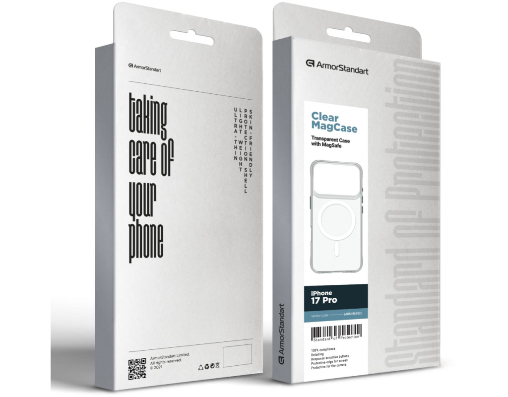 Чохол ArmorStandart Clear MagCase для Apple iPhone - це стильний і надійний захист для вашого гаджета. Він виготовлений з високоякісних матеріалів, що забезпечують тривалу службу і надійний захист вашого смартфона. Витончений дизайн Високоякісні матеріали Додаткове покриття, що застосовується на чохлі, дозволяє попередити пожовтіння матеріалів. Воно допомагає захистити чохол від впливу ультрафіолетового випромінювання, забезпечуючи тим самим стійкість до поблідніння і збереження оригінального вигляду протягом тривалого часу. Інноваційна гібридна конструкція Зміцнені амортизаційні кути додають додаткового захисту вашому смартфону, зменшуючи ризик ушкоджень при падінні з невеликої висоти. Додатковий захист дисплея та камери Завдяки виступаючим бортикам навколо дисплею та задньої камери, чохол надає додаткового захисту вашому гаджету від непередбачуваних ситуацій. Ці бортики створюють додатковий бар'єр, що допомагає захистити екран і камеру від подряпин, ударів і зношування. Всі необхідні отвори та кнопки Сумісність з Magsafe Особливості: