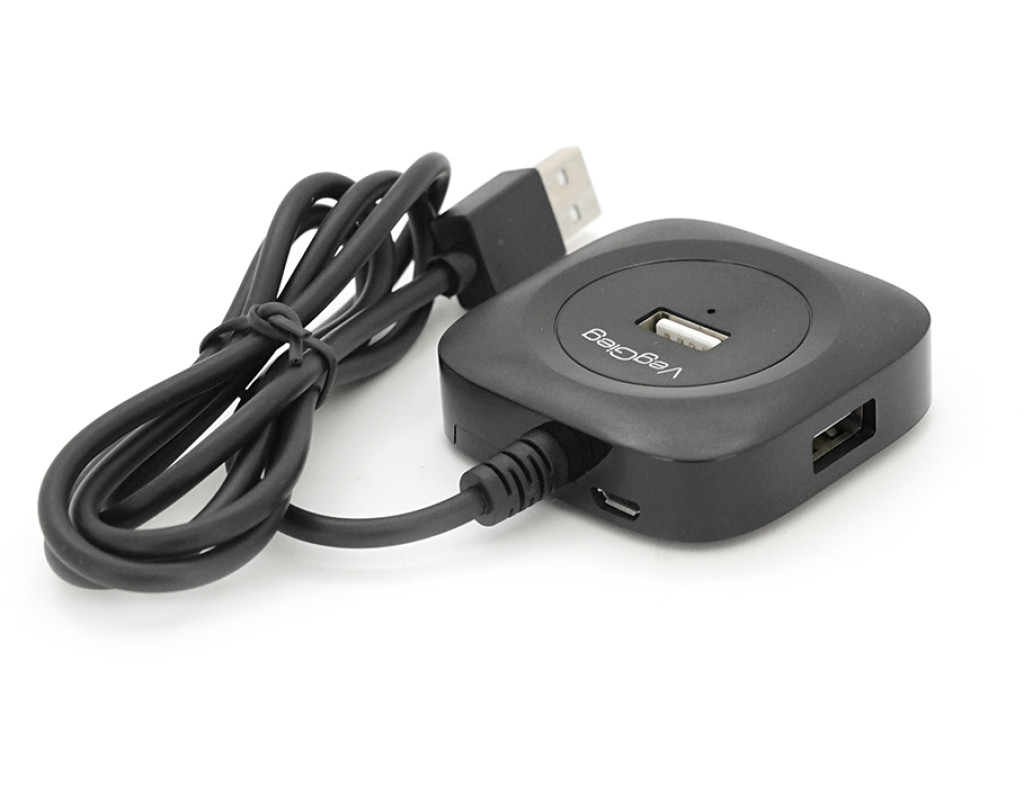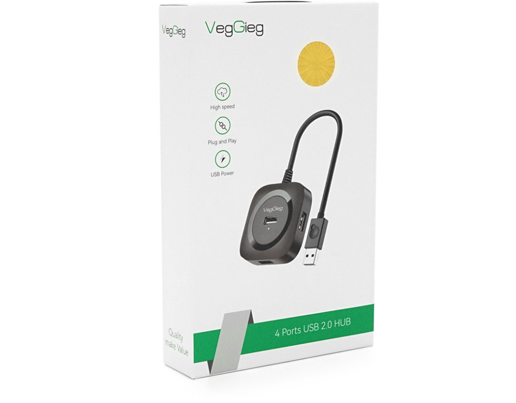 Хаб VEGGIEG V-U2406 USB 2.0 4 порта, 480Mbts, живлення від USB, Black, 1,0m, Box