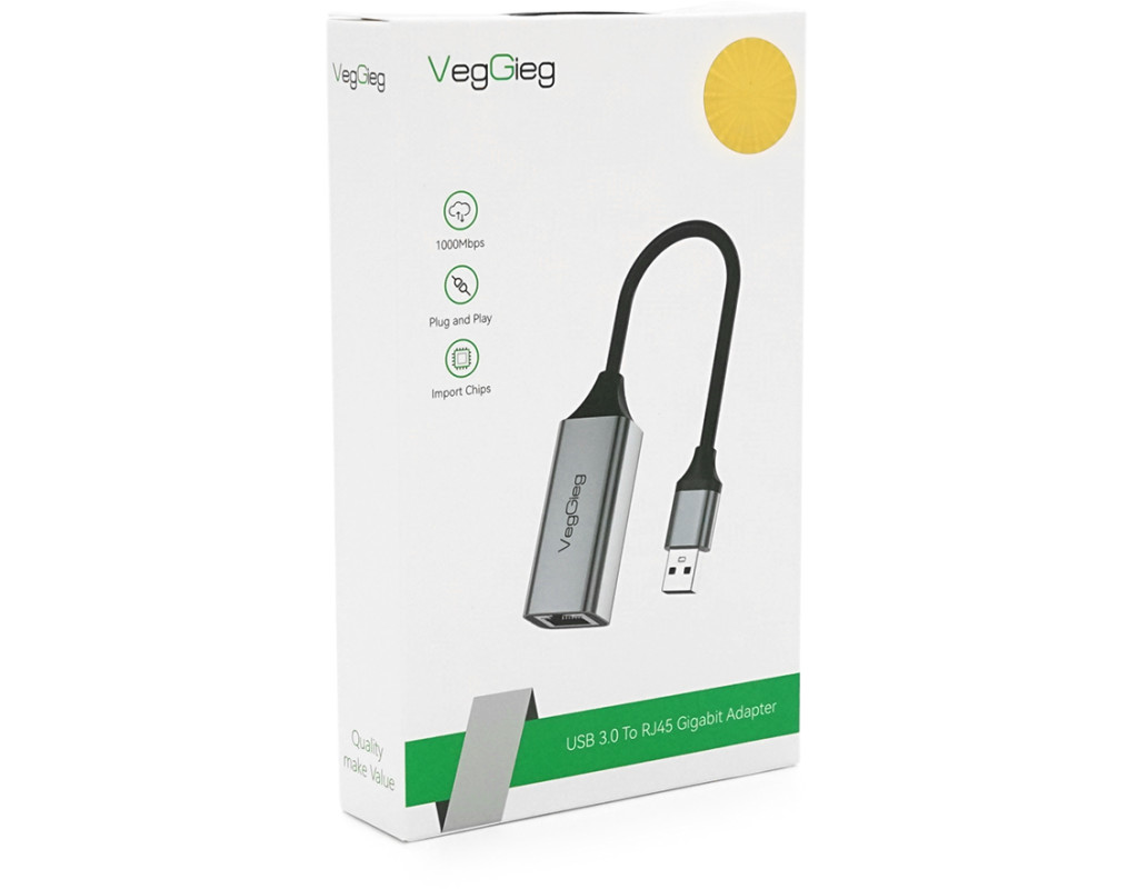 | Контролер USB 3.0 to Ethernet VEGGIEG V-K306 - Мережевий адаптер 100 / 1000Mbps з проводом, RTL-8152B, Aluminum, Blister-Box |