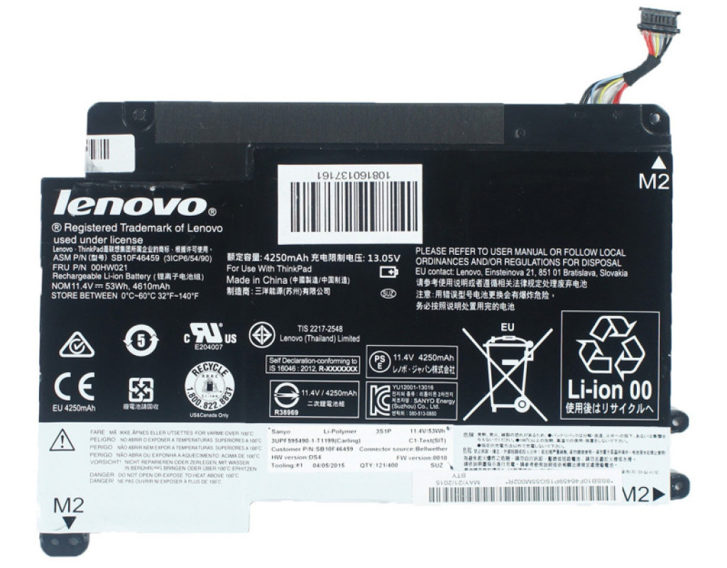 Аккумулятор для ноутбука Lenovo ThinkPad Yoga 460 00HW020, 4540mAh (53Wh), 3cell, 11.4V, Li-ion (A47879)