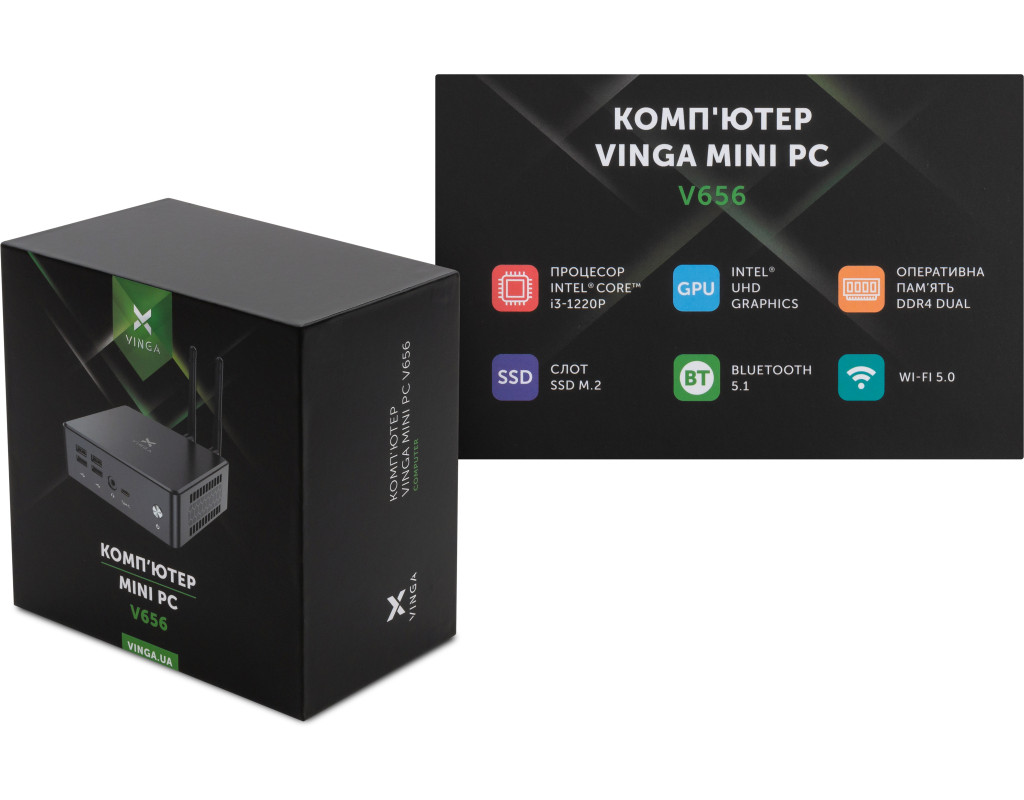 | Компьютер Vinga Mini PC V656 (V6561220P) представляет собой исключительно компактную и производительную систему, которая прекрасно сочетает в себе современные технологии и эргономичный дизайн. Этот неттоп, отнесенный к категории Barebone системы, предоставляет уникальную возможность настройки конфигурации под конкретные потребности пользователя. Именно это делает его идеальным выбором как для офисной среды, так и для домашнего использования, где важна каждая деталь. Мощная производительность обеспечивается процессором Intel Core i3 двенадцатого поколения, модель 1220P, который имеет 10 ядер и 12 потоков. Базовая частота процессора составляет 1.5 ГГц, а в режиме Boost она достигает значительных 4.4 ГГц, что позволяет обрабатывать даже самые требовательные задачи быстро и эффективно. Интегрированная видеокарта UHD Graphics обеспечивает высокое качество изображения, поддерживая многозадачность и воспроизведение мультимедиа на высоком уровне. Инновационные возможности подключения делают Vinga Mini PC V656 особенно удобным в использовании. Компьютер оснащен беспроводными модулями Bluetooth 5.1 и Wi-Fi (802.11ac), что позволяет легко подключаться к интернету и другим устройствам без необходимости использовать дополнительные кабели. Разнообразие внешних портов включает 1 x DisplayPort, 1 x Audio, 1 x RJ45, 1 x USB Type-C, 4 x USB 2.0, 2 x USB 3.2 Gen2, и 2 x HDMI, что открывает перед вами огромные возможности для подключения дополнительных девайсов и технологий. Гибкость настройки достигнута благодаря возможности установки двух модулей памяти SO-DIMM DDR4 (3200 MHz) и различных накопителей. Поддерживаются как традиционные HDD/SSD формата 2.5" (SATA3), так и современные скоростные M.2 (PCIEx4/SATA3) накопители с поддержкой протокола NVMe. Это решение позволяет индивидуально настраивать объем памяти и скорость обработки данных, в соответствии с вашими собственными потребностями. Удобство и эргономичность являются важными преимуществами Mini PC Vinga. Компактные размеры и возможность крепления VESA (75х75, 100х100) позволяют наилучшим образом организовать пространство, сделав эту модель идеальной для использования в ограниченных условиях. Компьютер оснащен внешним адаптером питания мощностью 65 Вт, что снижает тепловыделение и способствует экономии энергии, одновременно обеспечивая стабильную работу при интенсивных нагрузках. Интеллектуальные функции поддержки сетевых технологий, таких как Wake-on-LAN, позволяют удаленно управлять компьютером, значительно упрощая процессы администрирования и управления. Эта функция делает Vinga Mini PC особенно привлекательным выбором для организаций, которым требуется надежный и быстрый доступ к своим системам. Потрясающие мультимедийные возможности представлены адаптацией HDMI и DisplayPort для одновременного подключения нескольких мониторов, что идеально подходит для продуктивной работы и углубленных взаимодействий с контентом. Современная система вентиляции обеспечивает эффективное охлаждение, повышая надежность и продлевая срок эксплуатации устройства. В итоге, Vinga Mini PC V656 (V6561220P) - это не только компактный, но и чрезвычайно мощный компьютер, который предлагает невероятную гибкость, возможность масштабирования и множество вариантов подключения, предоставляя пользователям возможность создать оптимальную рабочую среду без лишних усилий. Это идеальный выбор для тех, кто ценит качество, надежность и высокие
