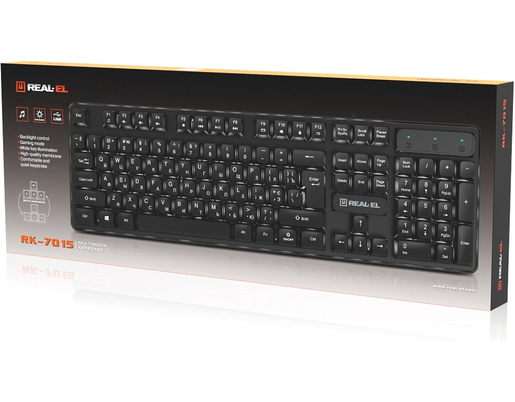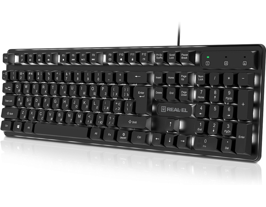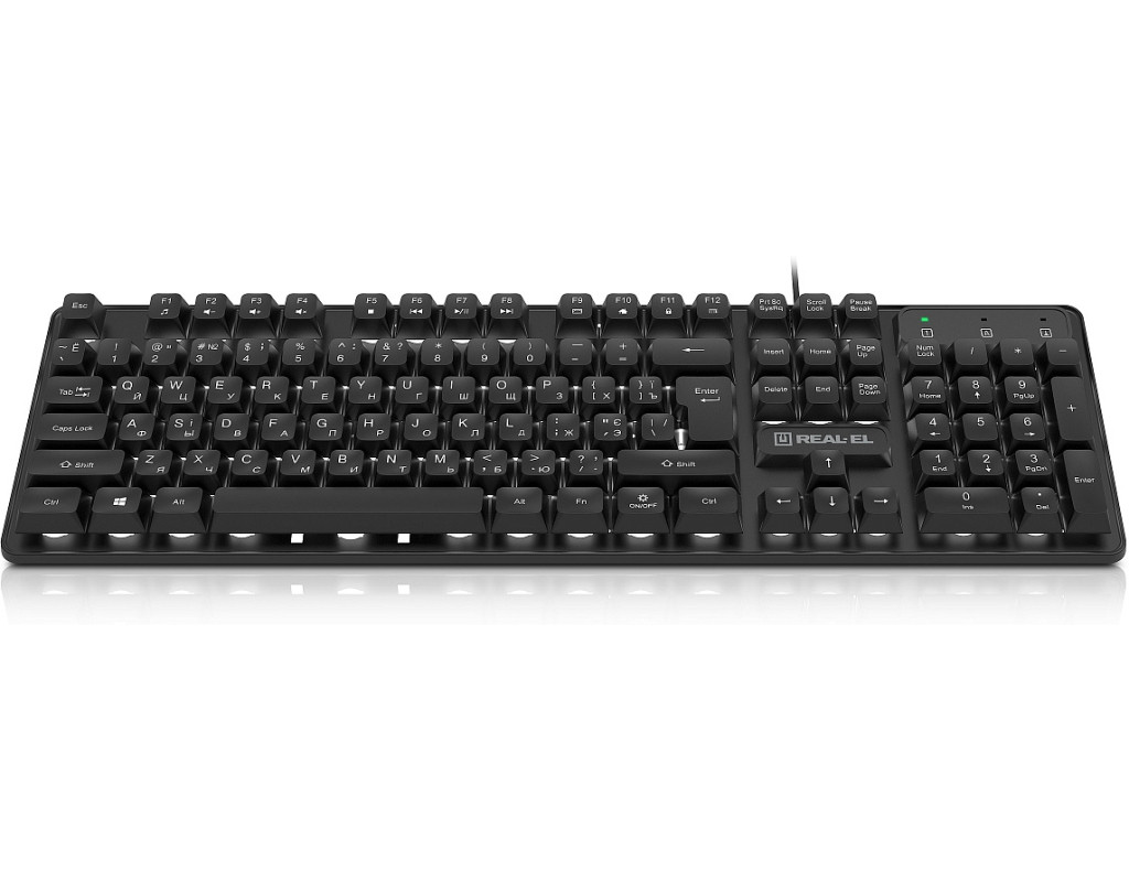 | Клавиатура REAL-EL RK-7015 USB Black (EL123100049) – это идеальный выбор для любого пользователя ПК, который ценит стиль, качество и функциональность. Мультимедийная клавиатура оснащена эргономичным дизайном, что обеспечивает комфорт даже после длительных сеансов работы или игры. Благодаря высококачественной мембранной конструкции клавиши обеспечивают мягкий, но четкий ход и выдерживают более 20 миллионов нажатий, что подтверждает их долговечность. REAL-EL RK-7015 подключается через USB, что делает её совместимой с разными версиями Windows. Одной из уникальных особенностей этой клавиатуры является RGB подсветка, которая создаёт захватывающую игровую атмосферу. Вы можете легко управлять подсветкой и переключаться между разными режимами, что дополнительно разнообразит ваш опыт использования. Формат клавиатуры полноразмерный, что обеспечивает полноценный набор всех необходимых клавиш для продуктивной работы. Раскладка клавиатуры поддерживает три языка: русский, украинский и английский, что делает её удобной для многоязычных пользователей. К дополнительным возможностям клавиатуры входят игровой режим и функциональные клавиши, которые активируются через комбинацию с кнопкой Fn. Это позволяет быстро управлять мультимедиа, интернетом и программами без лишних усилий. Благодаря комфортному, тихому нажатию, эта клавиатура идеально подходит для работы в офисе или дома. В целом, REAL-EL RK-7015 USB Black является стильным и практичным решением для любого пользователя, который ищет надёжную и функциональную клавиатуру с дополнительными мультимедийными возможностями. Выбирая эту модель, вы получаете не только прекрасное сочетание качества и доступности, но также высокий уровень комфорта и удовлетворения от работы. |