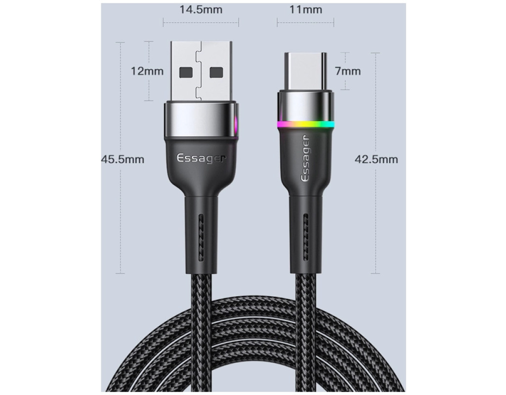 | Кабель Essager USB-A x USB-C для зарядки и передачи данных, с поддержкой быстрой зарядки, по технологии Qualcomm Quick Charge, для устройств - Xiaomi, Meizu, Samsung, LG, HTC, Huawei и других. Преимущества кабеля Essager: