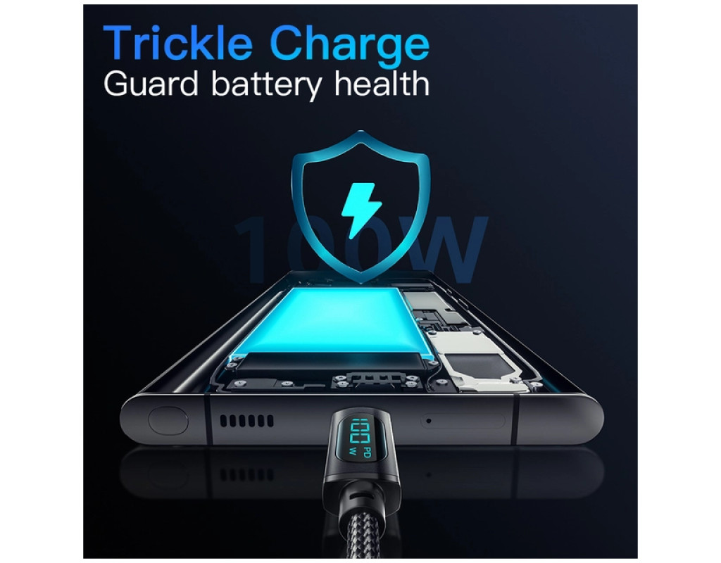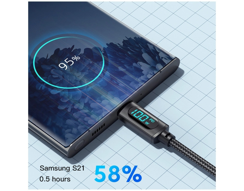 | Кабель Essager Led Digital Display Type-C to Type-C (100W, 5A) — надежный и долговечный аксессуар для зарядки и синхронизации гаджетов с интерфейсом Type-C. Плотная нейлоновая оболочка провода и корпуса штекеров из алюминия способствуют прочности и долговечности зарядного кабеля. Высокая мощность позволяет за короткое время восстановить заряд аккумулятора телефона, планшета или ноутбука. Светодиодный экран Экран цифрового дисплея показывает текущую выходную мощность во время зарядки устройства в режиме реального времени. Он не только позволяет вам видеть рабочее состояние системы зарядки, но также позволяет измерять эффективность зарядного устройства и аккумуляторов. Особенности кабеля Essager Led Digital Display Type-C to Type-C (100W, 5A)