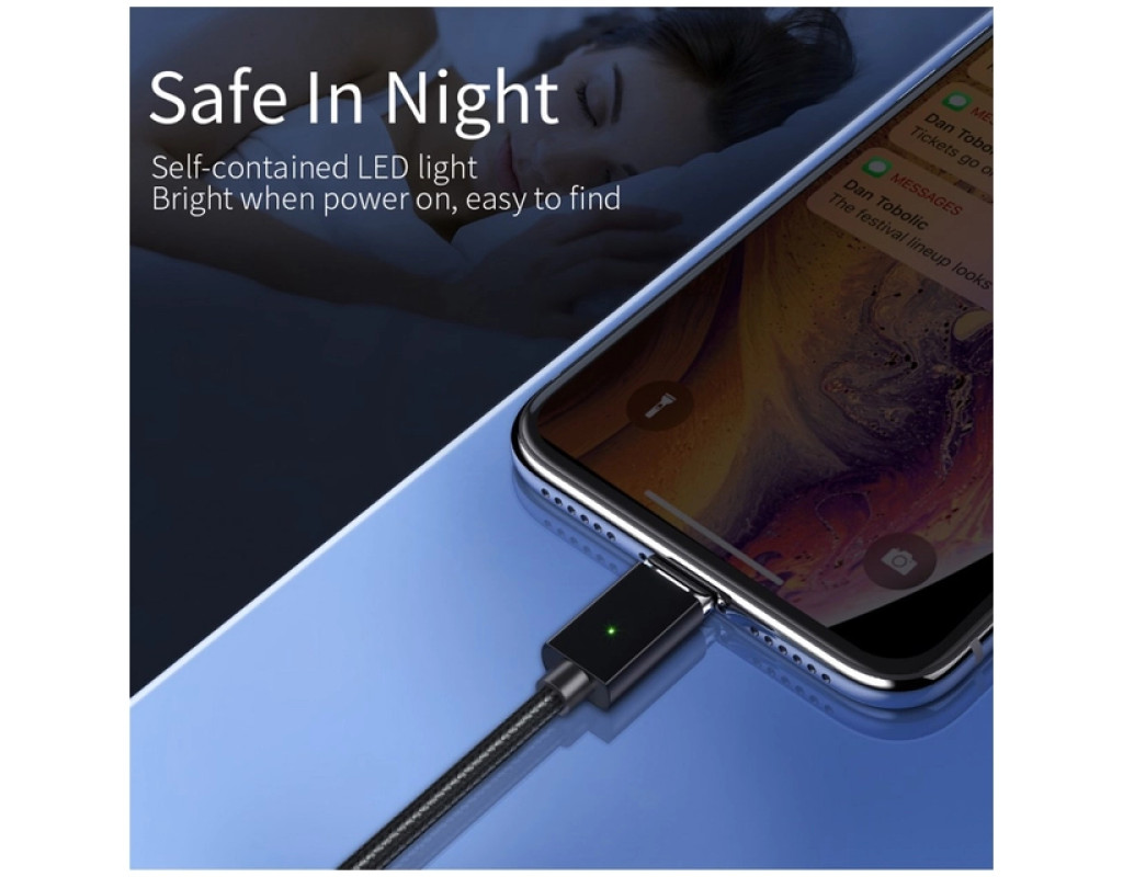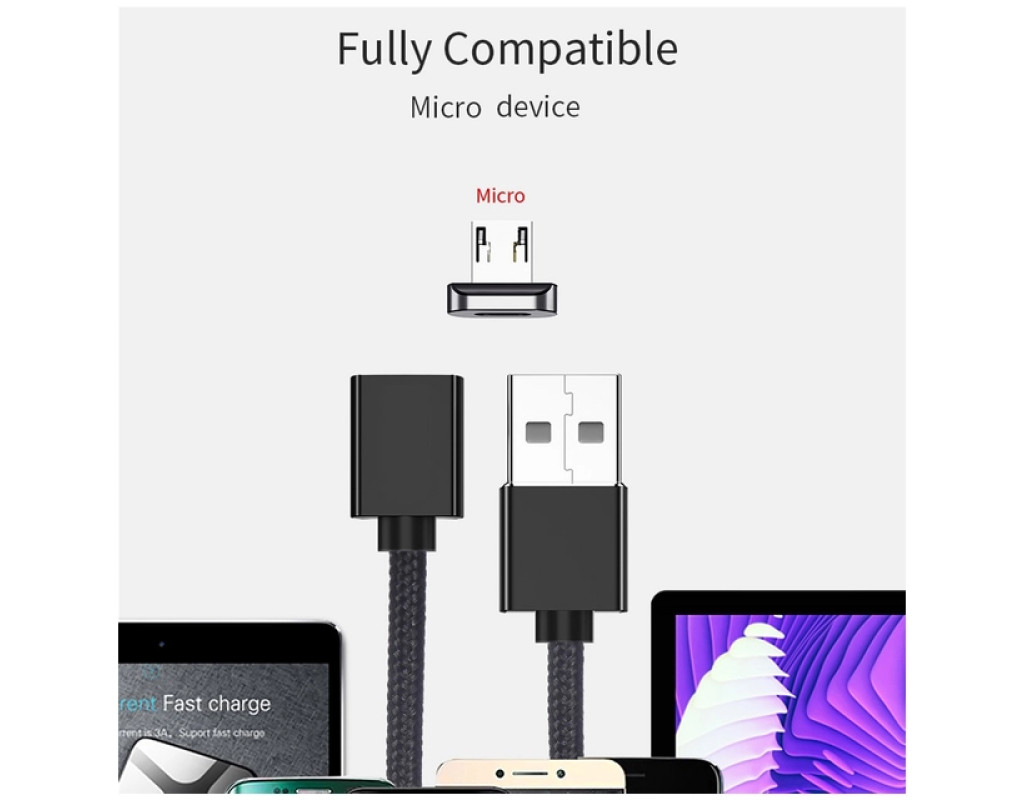 Магнитный кабель Essager USB to Micro выполнен из качественных материалов. По всей его поверхности можно обнаружить нейлоновую защитную оплетку. Прочный материал не трескается и не рвется. За счет нейлоновой оплетки, кабель можно сгибать на 360°. Сам кабель выполнен из термопластичного эластомера, а коннекторы — из алюминиевого сплава с разъёмами USB to Micro. Безопасный заряд батареи Магнитный кабель Essager имеет встроенную защиту, которая устраняет перегрев и перегрузку. Наполняйте энергией ваше устройство быстро и безопасно. Высококачественный кабель Essager USB to Micro идеально совместим с любым устройством с разъемом Micro. Характеристики: