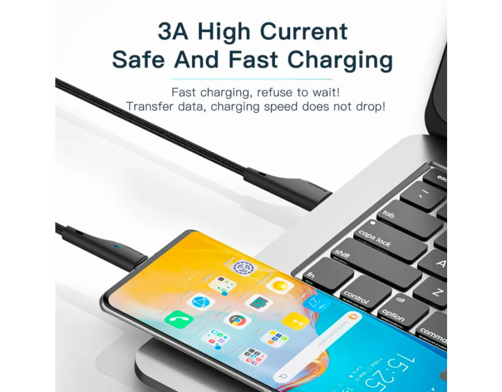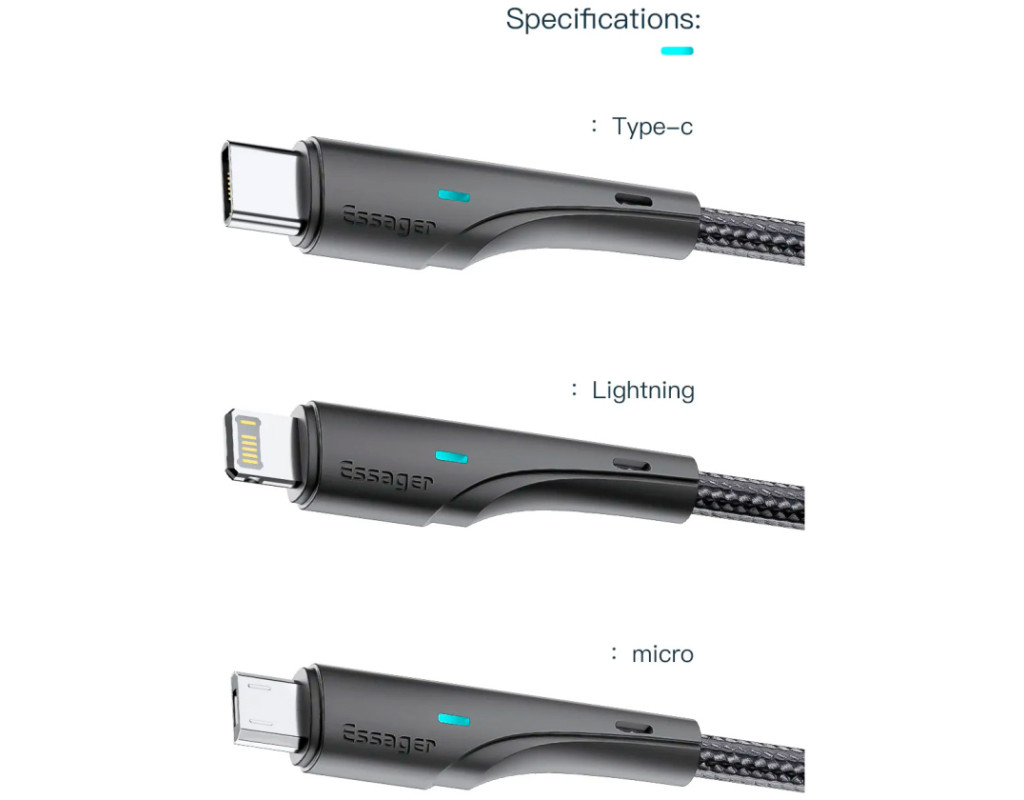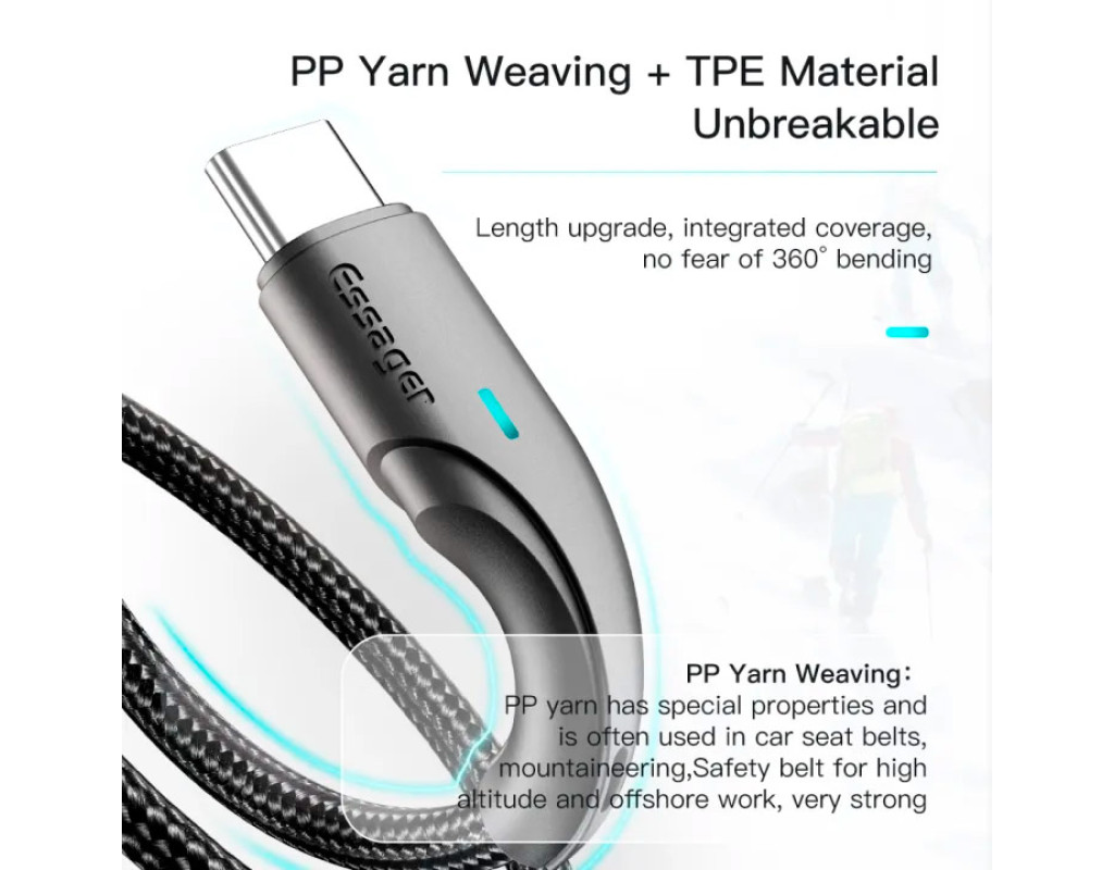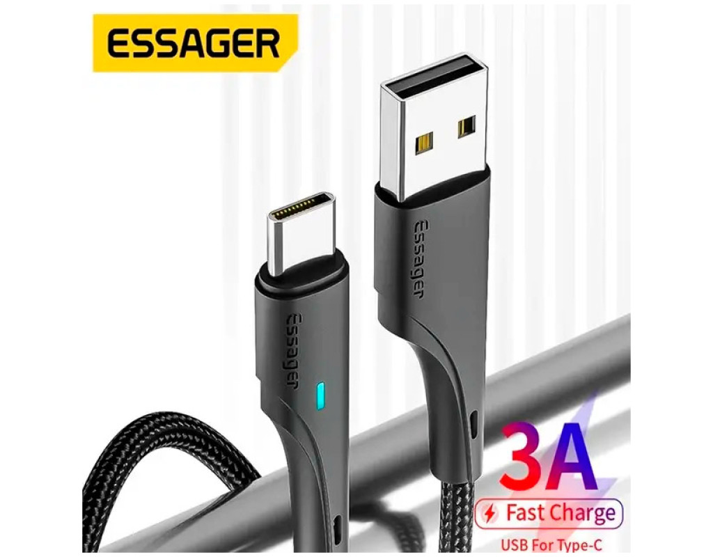 | Кабель Essager USB-A to Type-C 3A Fast Charging для зарядки и передачи данных, с поддержкой быстрой зарядки, по технологии Fast Charge, для устройств - Xiaomi, Meizu, Samsung, LG, HTC, Huawei и других. Преимущества кабеля Essager:
