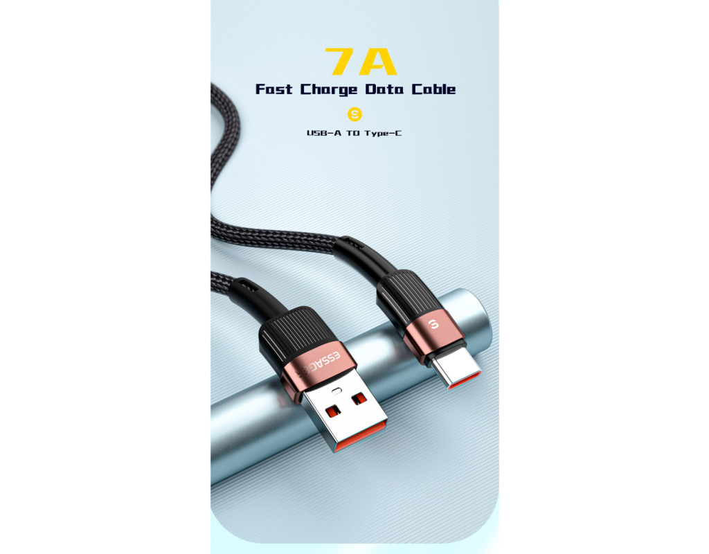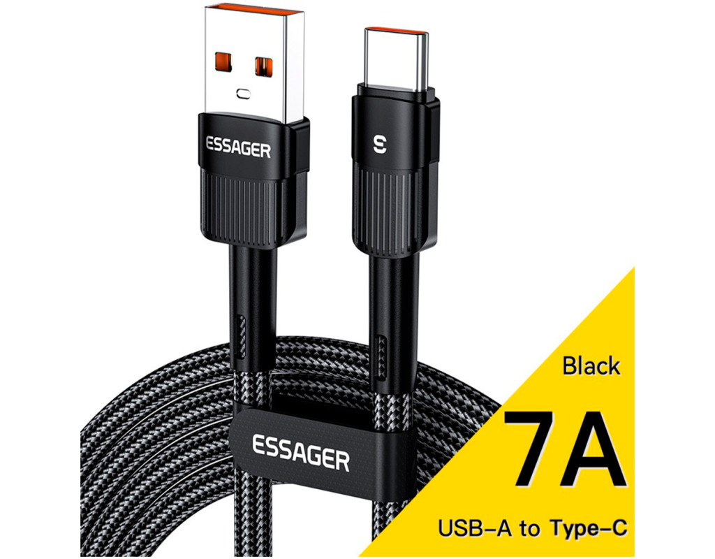 | Кабель Essager USB-A to Type-C 7A для зарядки и передачи данных, с поддержкой быстрой зарядки, по технологии Fast Charge, для устройств - Xiaomi, Meizu, Samsung, LG, HTC, Huawei и других. Преимущества кабеля Essager: