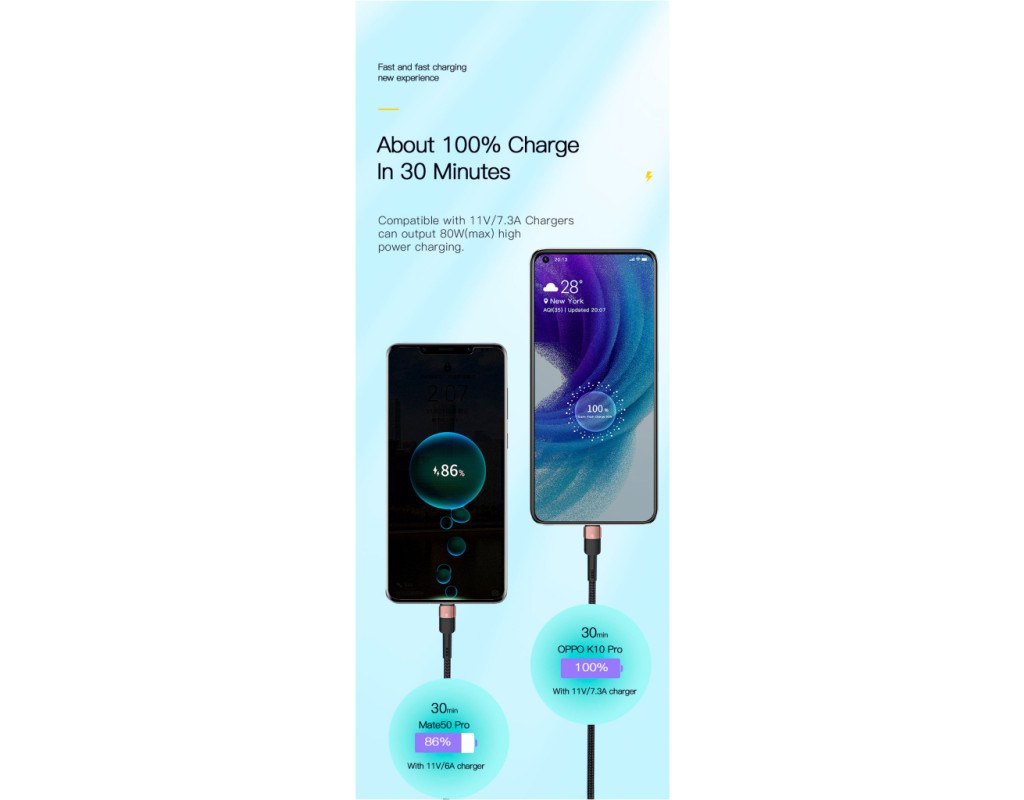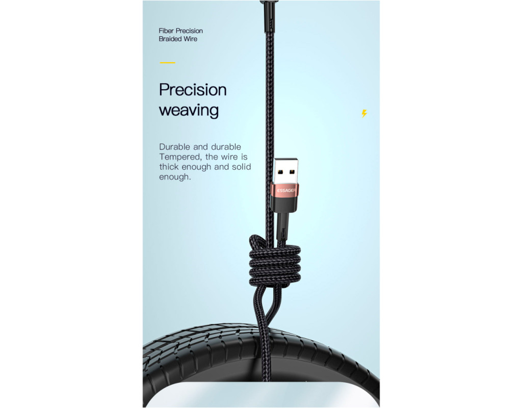 Дизайн Плетеный кабель Essager USB-A to USB-C 7A выполнен из качественных материалов. По всей его поверхности можно обнаружить нейлоновую защитную оплетку. Прочный материал не трескается и не рвется. За счет нейлоновой оплетки, кабель можно сгибать на 360°. Сам кабель выполнен из термопластичного эластомера, а коннекторы — из алюминиевого сплава с разъёмами USB-A to Type-C. Безопасный заряд батареи Кабель Essager имеет встроенную защиту, которая устраняет перегрев и перегрузку. Наполняйте энергией ваше устройство быстро и безопасно. Высококачественный кабель Essager USB-A to Type-C Cable 7A идеально совместим с любым устройством с разъемом USB-C. Характеристики: