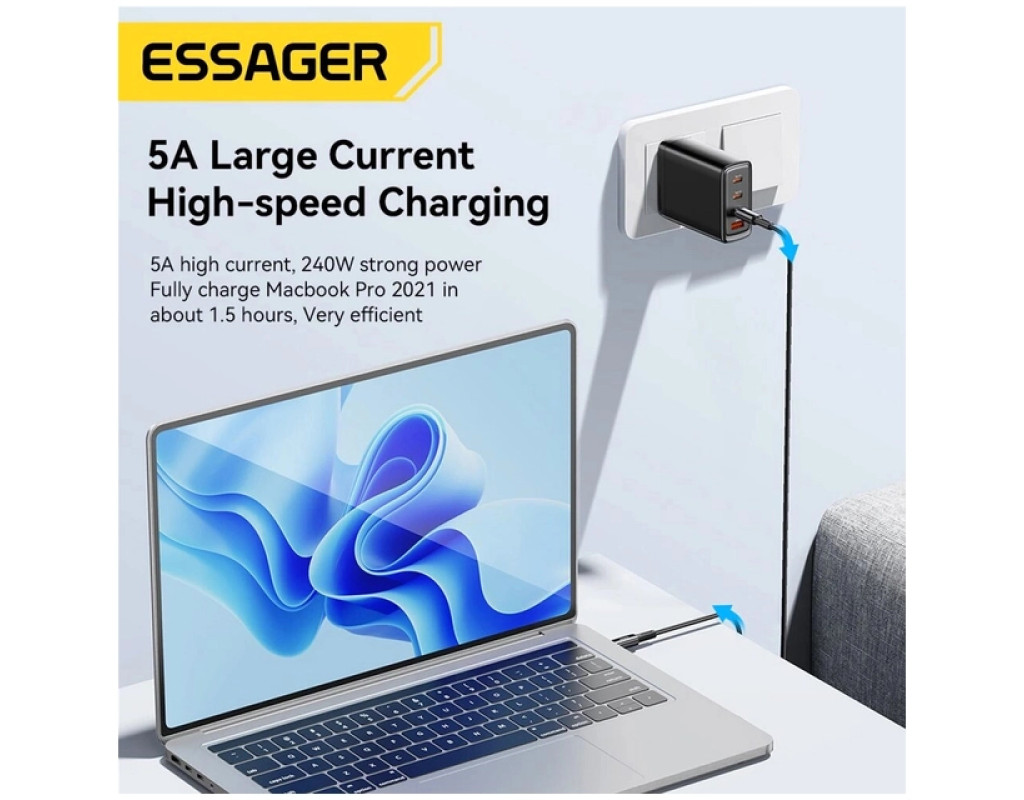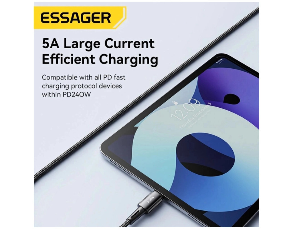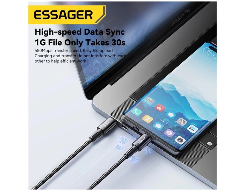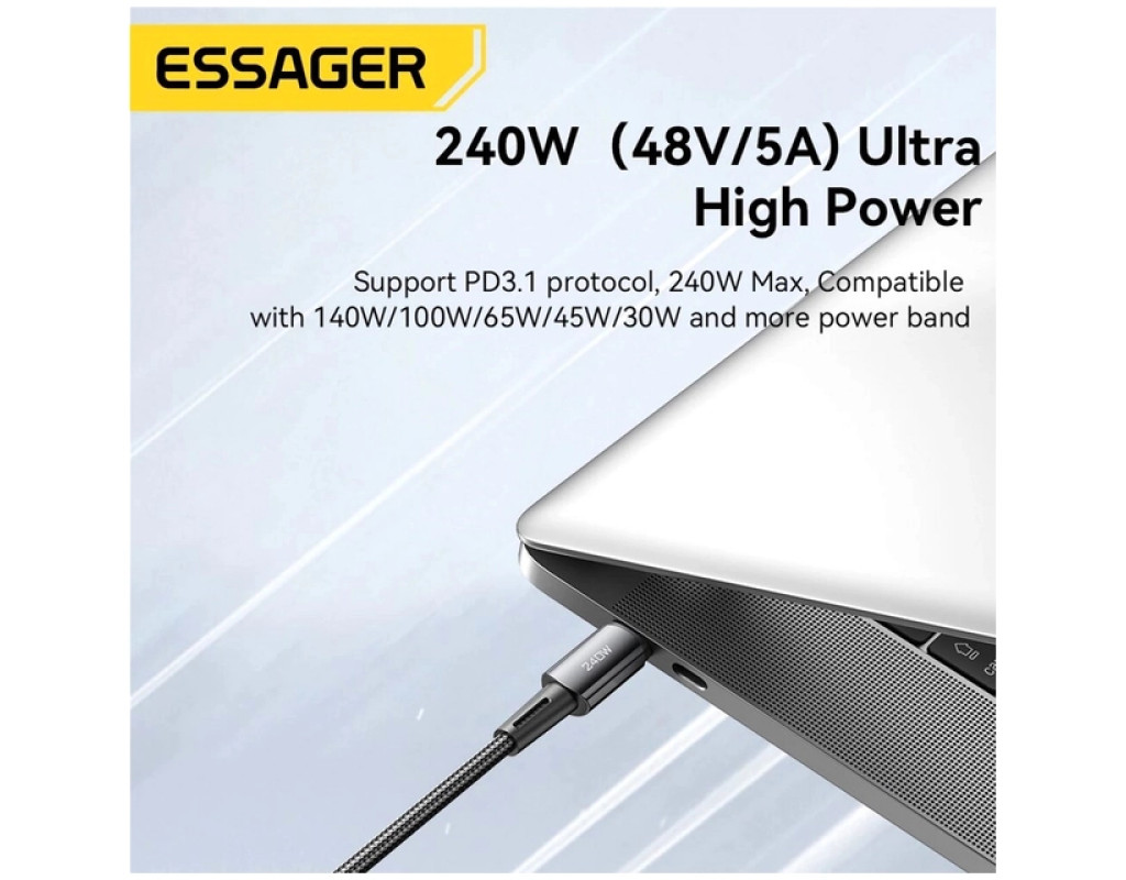 | Кабель ESSAGER Type C to Type-C 240W для зарядки и передачи данных, с поддержкой быстрой зарядки, по технологии Power Delivery 3.1, для устройств – Apple, Xiaomi, HP, Samsung, LG, HTC, Huawei и других. Преимущества кабеля Essager: