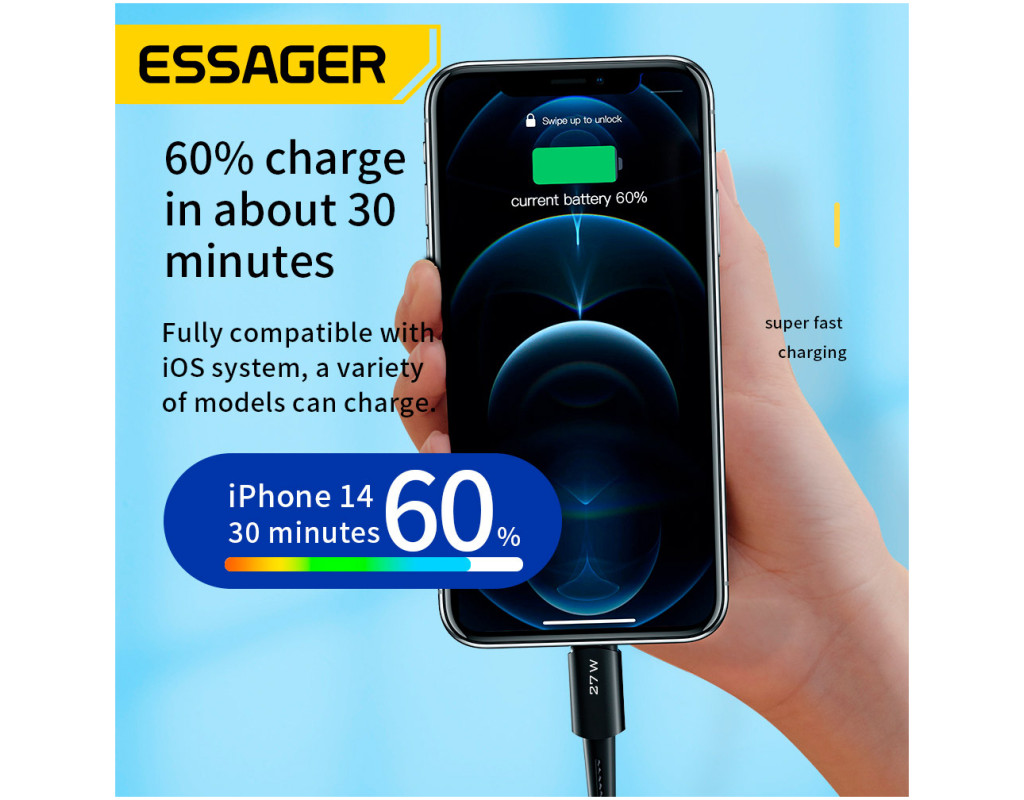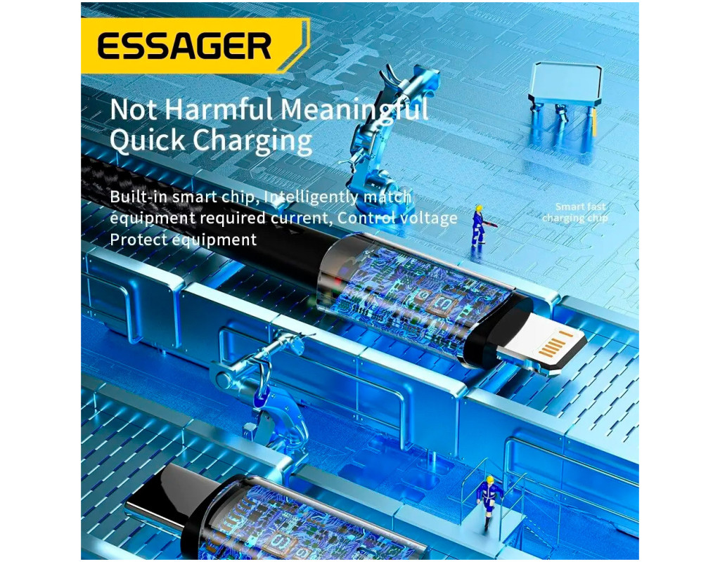 | Зарядный кабель Essager имеет уникальную и качественную конструкцию, которая гарантирует длительное использование без потери функциональности. Форма разъемов и тканевая оплетка обезопасят от перегибания кабеля во время эксплуатации. Зарядный кабель от Essager позволяет заряжать и передавать данные между совместимыми устройствами, которые имеют разъемы - USB-C x Lightning. К тому же, в конструкцию внедрили стандарт быстрой зарядки по протоколу Power Delivery, благодаря чему можно за короткое время восстановить заряд аккумулятора телефона или планшета. Преимущества кабеля Essager: