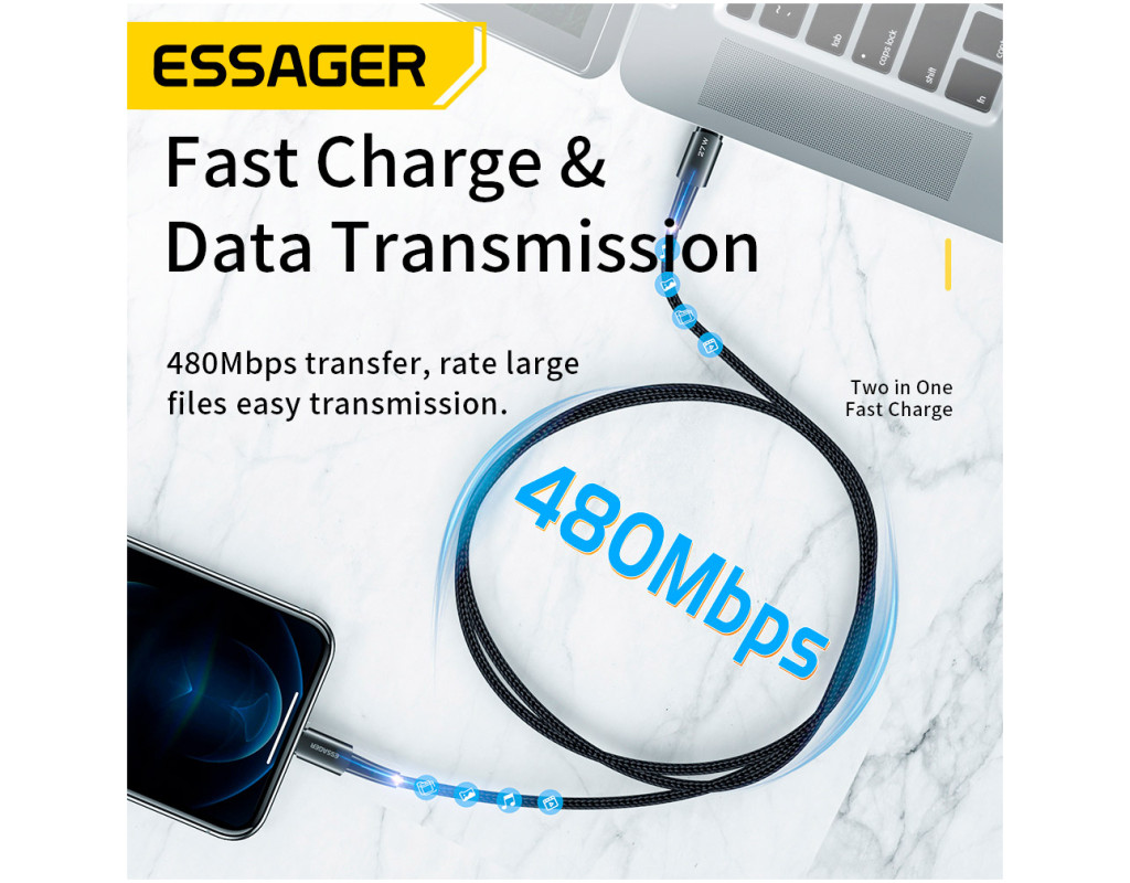 Плетеный кабель Essager USB-C x Lightning выполнен из качественных материалов. По всей его поверхности можно обнаружить нейлоновую защитную оплетку. Прочный материал не трескается и не рвется. За счет нейлоновой оплетки, кабель можно сгибать на 360°. Быстрая зарядка - это еще не все. Кабель Essager Display Fast Charging также обеспечивает не менее быструю передачу данных со скоростью 480 Мбит/с. Теперь вы сможете передавать все необходимые файлы между устройствами в одно мгновение. Фотографии, фильмы или документы - вам не придется бесконечно ждать, пока они окажутся в пункте назначения. Высококачественный кабель Essager идеально совместим с любым устройством с разъемом Lightning. |