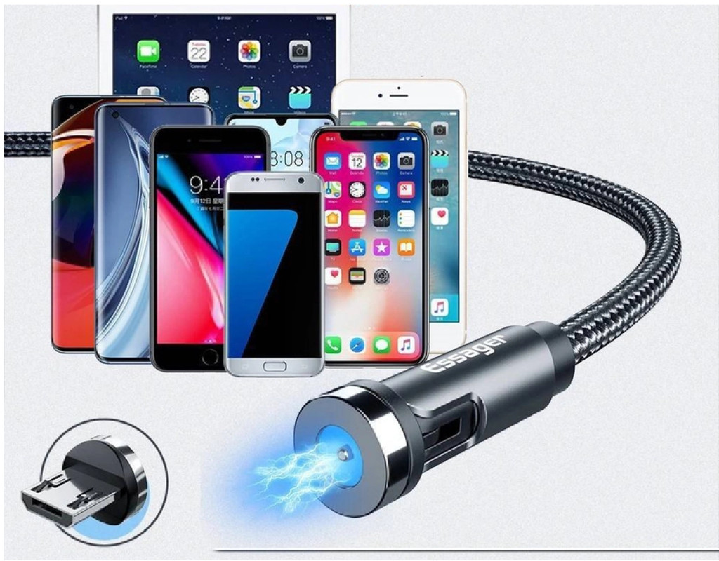 | Магнитный кабель ESSAGER USB to Micro для зарядки устройств - Xiaomi, Meizu, Samsung, LG, HTC, Huawei и других. Особенность провода – магнитный коннектор-переходник, который вставляется в разъем мобильного устройства. Затем для зарядки провод примагничивается к коннектору. Таким образом, разъем гаджета не изнашивается и дополнительно защищен от попадания влаги и пыли. Особенности:
