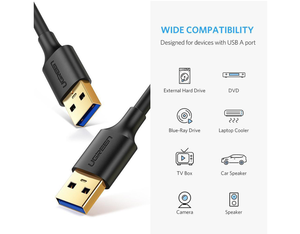 | Кабель Ugreen US128 USB-A 3.0 1 м Черный (10370) подключает периферийное устройство USB с портом USB 3.0 типа A к компьютеру для быстрой передачи файлов. Он действует как расширение для вашего соединения USB 3.0. Примечание: Не поддерживает прямое подключение двух компьютеров. Суперскоростная передача 5 Гбит/с: До 5 Гбит/с SuperSpeed для кабеля передачи данных USB 3.0, в 10 раз быстрее, чем USB 2.0. Обратная совместимость с компьютерными портами USB 2.0 и USB 1.1 — эти кабели также позволяют подключать устройства USB 3.0 к устаревшим компьютерам USB 2.0. Подключи и играй: Драйвера для usb 3.0 a к кабелю не нужны. Просто подключите и работайте для корпусов жестких дисков, принтеров, модемов, камер и других периферийных устройств SuperSpeed USB. Прочный и надежный: С формованными разъемами для снятия натяжения для долговечности и цепкими протекторами для легкого подключения и отключения, сочетание позолоченных разъемов, неизолированных медных проводников и экрана из фольги и оплетки обеспечивает превосходную производительность кабеля USB 3.0 и безошибочную передачу данных. Широкая совместимость: Кабель USB 3.0 a совместим с жесткими дисками Western Digital (WD) My Cloud и My Cloud Mirror с портом USB 3.0 типа A. |