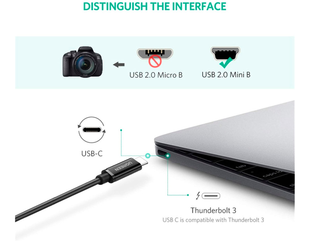 | Порт USB-C Совместим с MacBook 2015/2016, iMac Pro, Dell XPS 13(2016), Yoga 900, MacBook Pro 2016, Chromebook Pixel и т.д. Порт Mini USB B Совместимый с цифровыми камерами Canon, игровыми контроллерами, спутниковой навигацией, GPS-приемниками Garmin, микрофонами Zoom, видеорегистраторами, микрофонами Yeti и т.д. SuperSpeed Кабель Ugreen Mini-USB - USB-C поддерживает устройства с портом USB mini, обеспечивает скорость передачи данных до 480 Мбит/с и обратную совместимость с полноскоростным USB 1.1 и низкоскоростным USB 1.0. Превосходное качество изготовления Этот кабель USB Type-C - Mini-USB оснащен коррозионно-стойкими медными проводниками и экранами из фольги и оплетки для обеспечения максимальной проводимости, минимизации потерь данных и предотвращения электромагнитных и радиочастотных помех. Plug and play Этот кабель Mini-USB to USB-C не требует донгла или адаптера, прост в использовании. Удобный новый разъем Type-C можно легко подключать и отключать. Примечание: только Type-C to Mini, обратное использование не поддерживается. |