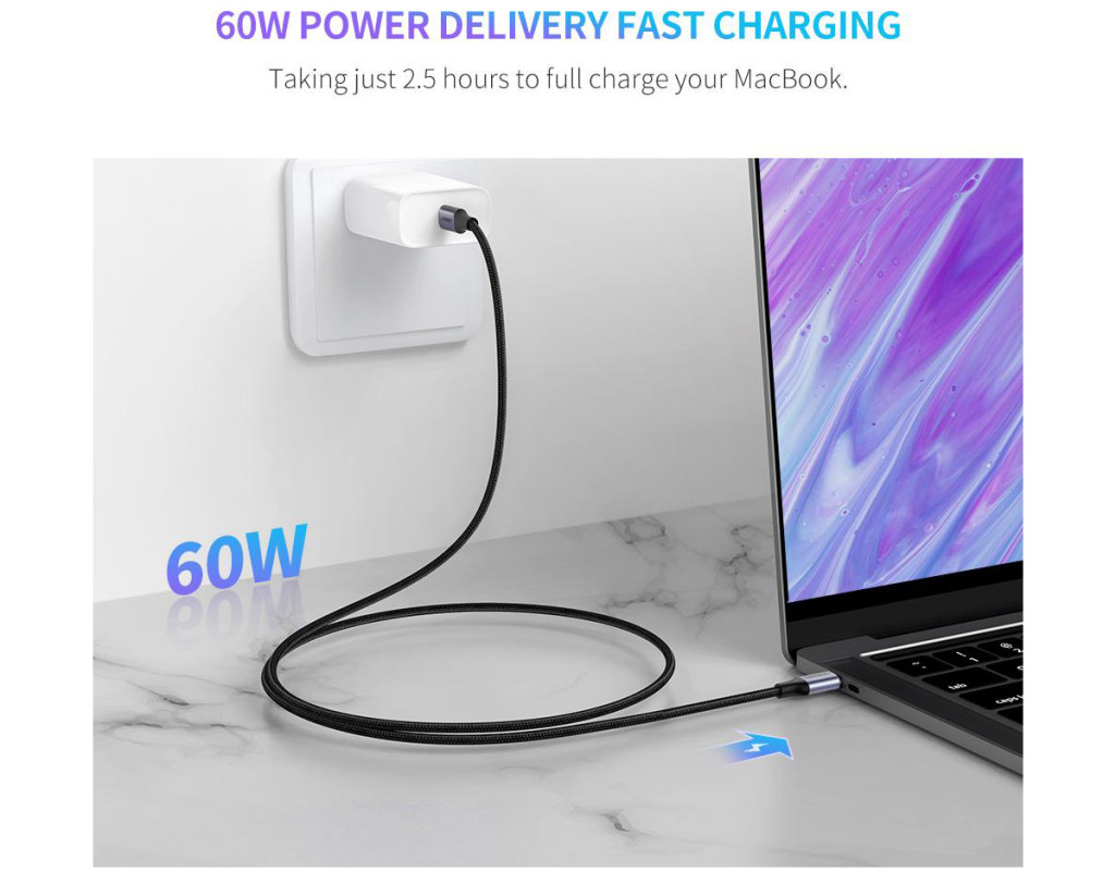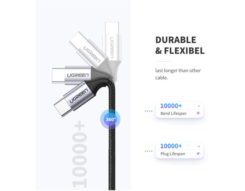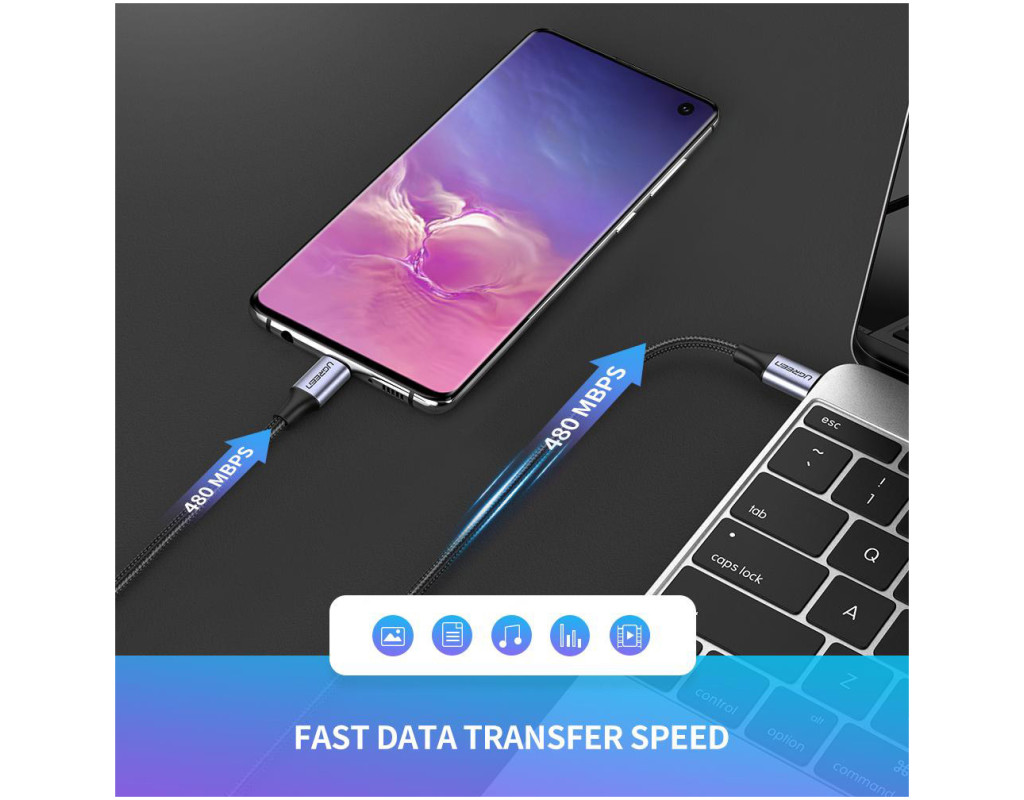 Оригинальный кабель Ugreen 60 Вт с USB-C на USB Type-C, USB 2.0. Быстрая зарядка 3A, поддержка технологий QC2.0/QC3.0 и PD. Широко совместим, совместим с Huawei mate 9, P10, P20 Series, Mate 20 Series. Samsung Note 9, Note 8, S8, S9, Xiaomi Mi 6, Mi 8, Mix 2, Macbook, Xiaomi Pro, Dell XPS 13 и т. д.