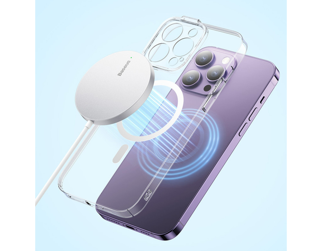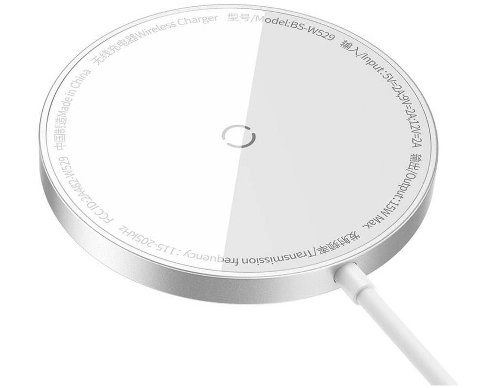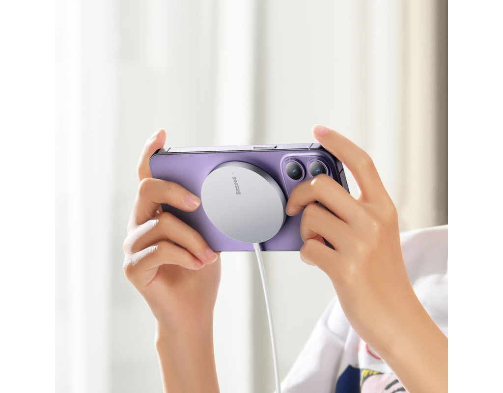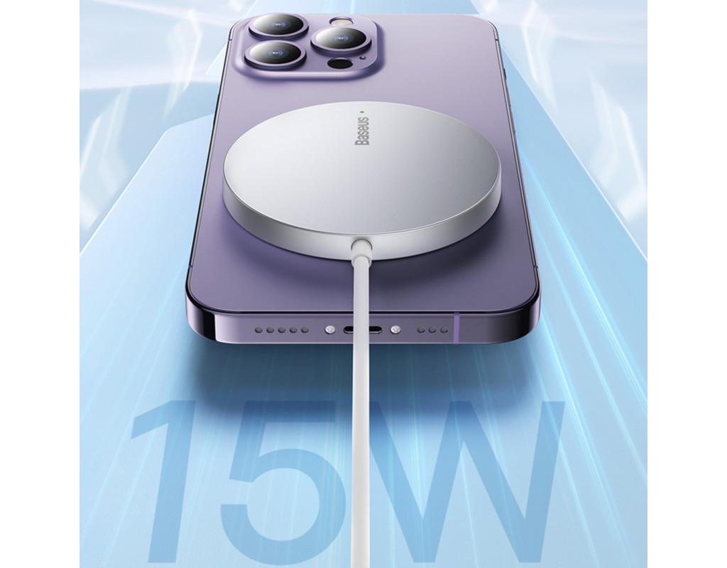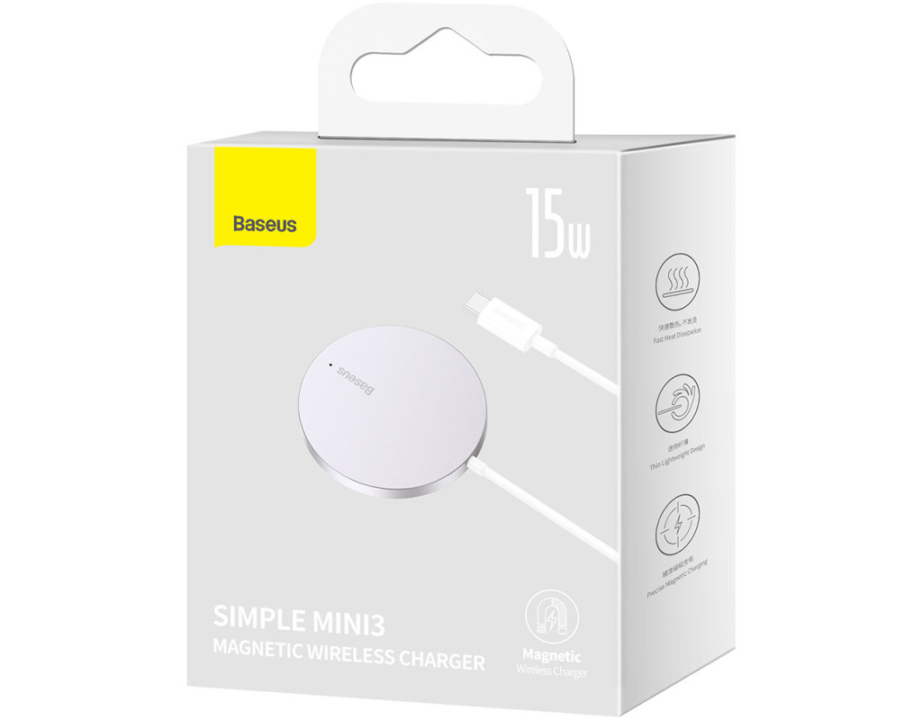 | Baseus Simple Mini3 Magnetic Wireless Charger 15W — беспроводное зарядное устройство с максимальной мощностью 15 Вт и встроенным магнитом для серии iPhone 12/13/14. Беспроводная зарядка для iPhone Беспроводное зарядное устройство разработано со встроенным магнитом, поэтому оно может заменить MagSafe для эффективной зарядки iPhone 12/13/14. Компактные размеры Толщина устройства составляет 6.5 мм, а длина меньше 7 см. Оно легкое и компактное, благодаря чему можно использовать все возможности смартфона даже во время зарядки. LED-индикатор LED-индикатор покажет вам заряжается ли ваш гаджет и оповестит мерцающим светом, если вы случайно положили на зарядку какой-то посторонний предмет. Защитные свойства Конструкция изготовлена из авиационного алюминия и закаленного стекла, которые не нагреваются во время зарядки и благодаря своей прочности гарантируют износостойкость. Устройство оснащено умной системой распознавания посторонних металлических предметов, что исключает возможность его перегрева или поломки, если на него попадут ключи, кредитная карта или другие объекты. Встроенная 9-уровневая система безопасности защищает ваш гаджет от высокого напряжения, перегрева, короткого замыкания, электромагнитного излучения или перезарядки. Основные характеристики