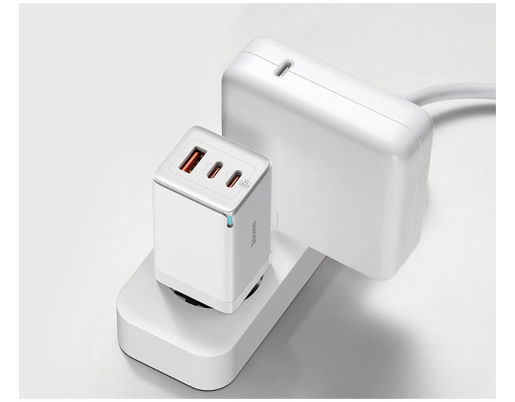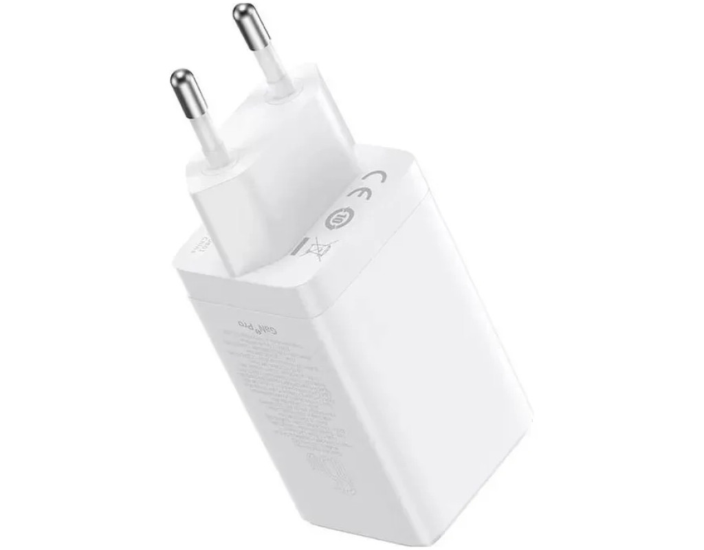 Адаптер Baseus GaN5 Pro Fast Charger QC4.0+PD3.0 65W USB+2Type-C 3A предназначен не только для ноутбуков, планшетов, iPhone, телефонов Android, но и для беспроводных колонок, наушников, фототехники, Power Bank, ламп и т. д. Неважно, какое у вас устройство – наслаждайтесь эффективной работой блока питания. Зарядка изготовлена из высококачественных компонентов. Современные чипы мирового класса, уникальный дизайн и прочный корпус обеспечивают надежность и безопасность. Управляющий чипсет регулирует ток на устройстве и защищает его от повреждений. Блок питания Baseus GaN5 Pro Fast Charger великолепно поддерживает зарядку устройств на iOS, Android или WindowsPhone – совместим с iPhone и Samsung. Ваше устройство будет получать ровно столько электроэнергии, сколько ему необходимо для восстановления силы в кратчайшие сроки, без риска повреждения батареи. Особенности и характеристики: