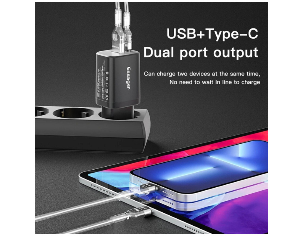 | Быстрое зарядное устройство Essager Fast Charger 30W (USB-C+USB-A) QC PD 3.0 White Сетевое зарядное устройство Essager Fast Charger с мощностью 30W, имеет сразу 2 порта USB-C+USB-A, что позволит заряжать 2 устройства одновременно, совместим c различными протоколами быстрой зарядки, имеет несколько цепей защиты и компактный размер. Адаптер универсален как для смартфонов, так и для планшетов различных брендов При использовании порта USB-C, с максимальной мощностью 30W, скорость зарядки приятно удивит: - iPhone 13 за пол часа, данное зарядное устройство зарядит примерно до 60%, что в 4 раза быстрее чем самые простые зарядные устройства 5В\1А - iPad Pro 2021 полностью зарядится примерно за 2 часа/ Технические характеристики зарядного устройства Essager Fast Charger 30W (USB-C+USB-A): - Поддерживаемые протоколы быстрой зарядки: PD 3.0/QC 3.0/PPS/FCP/AFC/Apple 2.4A - Входное напряжение: AC 100-240V 50/60 гц 0.6а Макс. - Выход на порту USB-C при одиночном использование порта: 5V/3A; 9V/3A; 12V/2.5A; 15V/2A; 20V/1.5A Max. - Выход на порту USB-A при одиночном использование порта: 5V/3A; 9V/2A; 12V/1.5A Max - Выход на портах USB-C+USB-A при одновременном использовании двух портов: 5V/3A Max - Размеры: 84.5 х 29 х 35 мм - Цвет: белый |