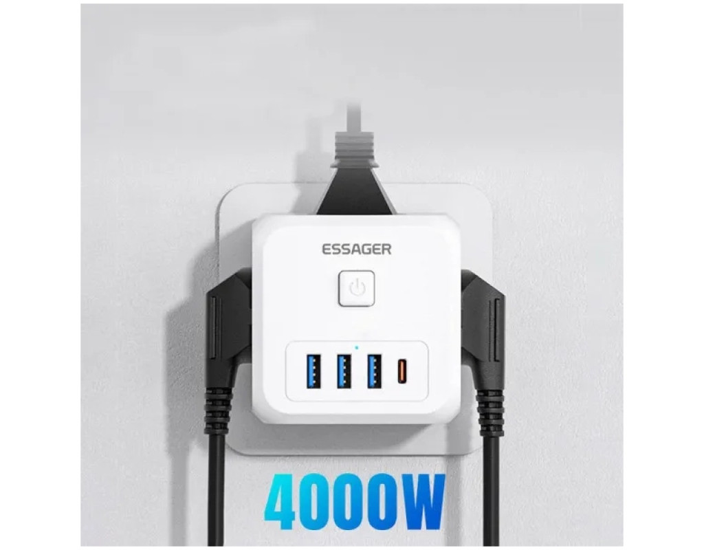 | ESSAGER Magic Cube 7 in 1 Wall Socket – это универсальный и компактный адаптер, сочетающий в себе три розетки и четыре порта для зарядки USB (три USB-A и один Type-C), позволяющий заряжать до 7 устройств одновременно. Это решение обеспечивает удобное подключение и зарядку разных устройств. ESSAGER Magic Cube имеет номинальную мощность 4000 Вт 16 A 100-250 В, что означает, что он может работать с такими мощными устройствами как компьютеры, принтеры и другая электроника. Вы можете использовать его для питания нескольких устройств, не беспокоясь о перегрузке. Особенности: