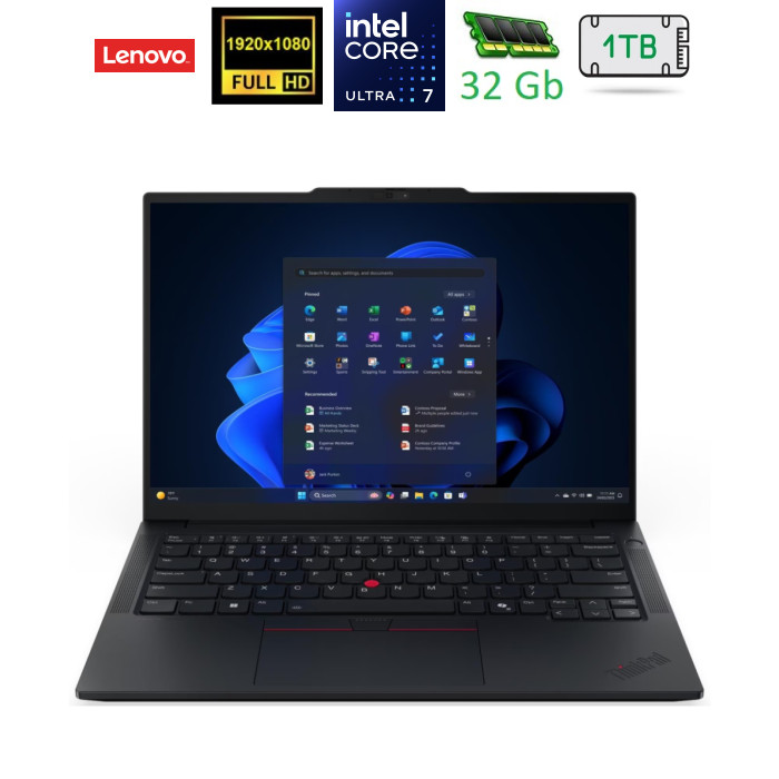 ThinkPad E14 Gen 7 — мощный помощник для работы ThinkPad E14 Gen 7 Black (21SYS0AP00) — это современный ноутбук, открывающий новые возможности для бизнес-пользователей. Устройство разработано для обеспечения высокой производительности, безопасности и удобства как в офисе, так и в дороге. Благодаря компактным размерам, прочному корпусу с алюминиевыми элементами и передовым технологиям, ThinkPad E14 Gen 7 станет незаменимым инструментом для технически подкованных профессионалов. Оптимизированный под нужды финансовых аналитиков, дизайнеров, архитекторов и управленцев, ноутбук предлагает мощную начинку, автономную работу и аппаратную защиту данных, подчеркивая свою надежность. Производительность, превосходящая ожидания ThinkPad E14 Gen 7 оснащён процессором Intel Core Ultra 7 255H с 16 физическими ядрами и 16 вычислительными потоками. Это позволяет устройству выполнять сложные задачи с максимальной скоростью — производительные ядра работают на частоте до 5.1 ГГц. В ноутбуке установлено 32 ГБ оперативной памяти SO-DIMM DDR5-5600, что обеспечивает лёгкий запуск ресурсоёмких приложений и выполнение задач без задержек. Для хранения данных предусмотрен сверхбыстрый SSD-накопитель объёмом 1024 ГБ формата M.2. Такой подход к памяти гарантирует быструю загрузку системы и поддержку даже самых требовательных сценариев использования. Экран и графика для ярких визуальных впечатлений 14-дюймовый дисплей ThinkPad E14 Gen 7 поддерживает разрешение WUXGA (1920x1200), охватывает 45% цветового пространства NTSC и обладает яркостью 300 нит. Благодаря IPS-матрице и антибликовому покрытию экран отлично подходит для работы в пути, снижая нагрузку на глаза даже при длительном использовании. Сертификат TÜV Rheinland Low Blue Light подтверждает наличие технологий защиты зрения — особенно важно для пользователей, работающих с текстом или графикой. Интегрированная графика Intel Arc 140T позволяет эффективно справляться с мультимедийными задачами, создавать презентации и проводить видеоконференции. Прочность, стиль и внимание к деталям ThinkPad E14 Gen 7 выполнен в элегантном чёрном корпусе из алюминия и поликарбоната, что обеспечивает высокую прочность. Вес составляет всего 1.34 кг, что делает устройство крайне портативным. Клавиатура водостойкая, с подсветкой и мультимедийными клавишами — удобно для работы в условиях слабого освещения. Аудиосистема от HARMAN с поддержкой Dolby Atmos и стереодинамиками мощностью 2 Вт обеспечивает насыщенное звучание при презентациях и просмотре видео. Для подключения ThinkPad E14 Gen 7 предлагает широкий набор портов: USB-C (Thunderbolt 4), два USB-A (3.2 Gen 1 и 3.2 Gen 2), HDMI 2.1, Ethernet RJ-45 и аудиоразъём. Это делает устройство универсальным для работы в любых условиях. Автономность, подключение и безопасность Ноутбук ThinkPad E14 Gen 7 оснащён аккумулятором, обеспечивающим до 10 часов автономной работы. Беспроводное подключение Intel Wi-Fi 6E AX211 гарантирует стабильную связь в любых условиях — идеально для видеозвонков и удалённой работы. В плане безопасности устройство предлагает широкий набор функций: TPM 2.0, биометрический сканер в кнопке питания. Кроме того, ThinkPad E14 Gen 7 оснащён физической шторкой для камеры, обеспечивающей конфиденциальность пользователя. Прочный корпус протестирован по военному стандарту MIL-STD-810H, что гарантирует долговечность и устойчивость к внешним воздействиям. ThinkPad E14 Gen 7 — ваш надёжный бизнес-партнёр, сочетающий инновации, прочност
