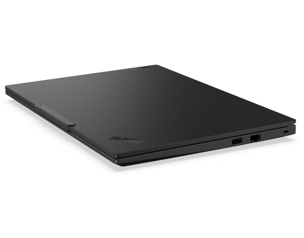 ThinkPad E14 Gen 7 — мощный помощник для работы ThinkPad E14 Gen 7 Black (21SYS0AP00) — это современный ноутбук, открывающий новые возможности для бизнес-пользователей. Устройство разработано для обеспечения высокой производительности, безопасности и удобства как в офисе, так и в дороге. Благодаря компактным размерам, прочному корпусу с алюминиевыми элементами и передовым технологиям, ThinkPad E14 Gen 7 станет незаменимым инструментом для технически подкованных профессионалов. Оптимизированный под нужды финансовых аналитиков, дизайнеров, архитекторов и управленцев, ноутбук предлагает мощную начинку, автономную работу и аппаратную защиту данных, подчеркивая свою надежность. Производительность, превосходящая ожидания ThinkPad E14 Gen 7 оснащён процессором Intel Core Ultra 7 255H с 16 физическими ядрами и 16 вычислительными потоками. Это позволяет устройству выполнять сложные задачи с максимальной скоростью — производительные ядра работают на частоте до 5.1 ГГц. В ноутбуке установлено 32 ГБ оперативной памяти SO-DIMM DDR5-5600, что обеспечивает лёгкий запуск ресурсоёмких приложений и выполнение задач без задержек. Для хранения данных предусмотрен сверхбыстрый SSD-накопитель объёмом 1024 ГБ формата M.2. Такой подход к памяти гарантирует быструю загрузку системы и поддержку даже самых требовательных сценариев использования. Экран и графика для ярких визуальных впечатлений 14-дюймовый дисплей ThinkPad E14 Gen 7 поддерживает разрешение WUXGA (1920x1200), охватывает 45% цветового пространства NTSC и обладает яркостью 300 нит. Благодаря IPS-матрице и антибликовому покрытию экран отлично подходит для работы в пути, снижая нагрузку на глаза даже при длительном использовании. Сертификат TÜV Rheinland Low Blue Light подтверждает наличие технологий защиты зрения — особенно важно для пользователей, работающих с текстом или графикой. Интегрированная графика Intel Arc 140T позволяет эффективно справляться с мультимедийными задачами, создавать презентации и проводить видеоконференции. Прочность, стиль и внимание к деталям ThinkPad E14 Gen 7 выполнен в элегантном чёрном корпусе из алюминия и поликарбоната, что обеспечивает высокую прочность. Вес составляет всего 1.34 кг, что делает устройство крайне портативным. Клавиатура водостойкая, с подсветкой и мультимедийными клавишами — удобно для работы в условиях слабого освещения. Аудиосистема от HARMAN с поддержкой Dolby Atmos и стереодинамиками мощностью 2 Вт обеспечивает насыщенное звучание при презентациях и просмотре видео. Для подключения ThinkPad E14 Gen 7 предлагает широкий набор портов: USB-C (Thunderbolt 4), два USB-A (3.2 Gen 1 и 3.2 Gen 2), HDMI 2.1, Ethernet RJ-45 и аудиоразъём. Это делает устройство универсальным для работы в любых условиях. Автономность, подключение и безопасность Ноутбук ThinkPad E14 Gen 7 оснащён аккумулятором, обеспечивающим до 10 часов автономной работы. Беспроводное подключение Intel Wi-Fi 6E AX211 гарантирует стабильную связь в любых условиях — идеально для видеозвонков и удалённой работы. В плане безопасности устройство предлагает широкий набор функций: TPM 2.0, биометрический сканер в кнопке питания. Кроме того, ThinkPad E14 Gen 7 оснащён физической шторкой для камеры, обеспечивающей конфиденциальность пользователя. Прочный корпус протестирован по военному стандарту MIL-STD-810H, что гарантирует долговечность и устойчивость к внешним воздействиям. ThinkPad E14 Gen 7 — ваш надёжный бизнес-партнёр, сочетающий инновации, прочност