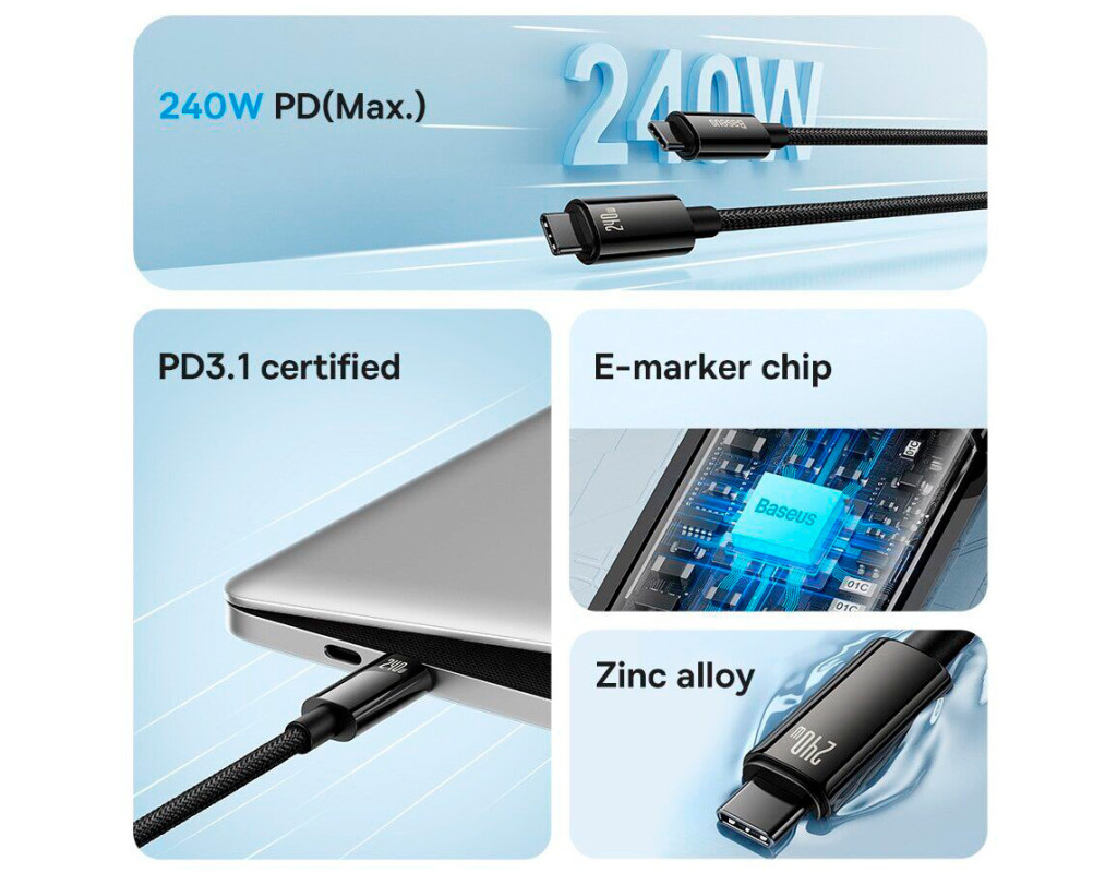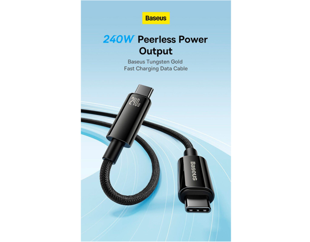 Baseus Tungsten 240W – это премиум-кабель, созданный для максимальной производительности, надежности и долговечности. |