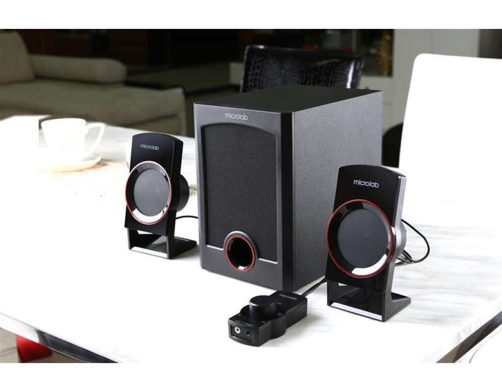 Кабинет сабвуфера выполнен из дерева (МДФ) и имеет жесткую конструкцию, поэтому низкие частоты имеют "теплое" звучание без резонансных колебаний и призвуков. Отличительная особенность M-111 - это проводной пульт управления с большим маховиком. Он обеспечивает плавную, удобную регулировку громкости, а также быстрое подключение стереогарнитуры, например, при работе в офисе. Мicrolab M-111 - это система со сбалансированным звучанием, поэтому она подойдёт для компьютерных игр, просмотра фильмов, а также для прослушивания музыки в рабочей обстановке. |