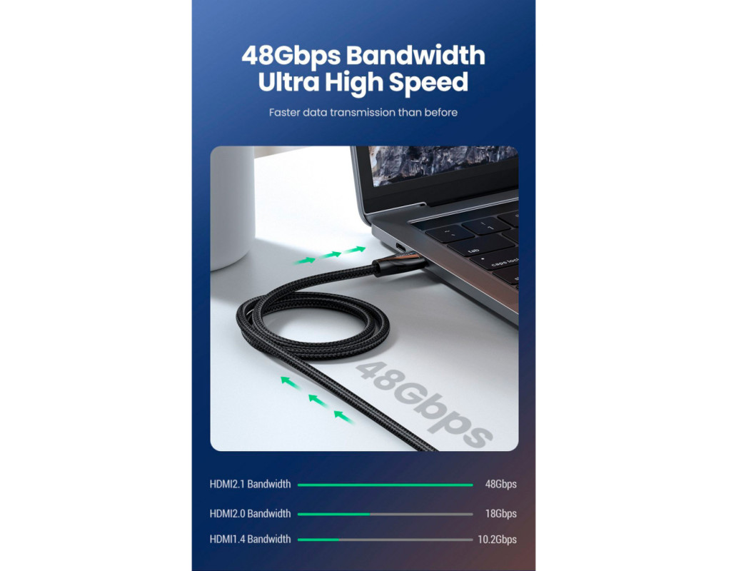 | Обновите до новейшей технологии HDMI 2.1 С помощью нашего кабеля UGREEN HDMI 2.1, который поддерживает пропускную способность до 48 Гбит/с, что делает его в 2.6 раза быстрее, чем HDMI 2.0. Он также обратно совместим со старыми версиями, обеспечивая совместимость со всеми вашими устройствами. С нашими кабелями HDMI 8K@60Гц вы можете наслаждаться непревзойденными кинематографическими впечатлениями с идеальной точностью звука и Dolby Vision. Технология eARC/динамический HDR обеспечивает потрясающие визуальные 3D-эффекты, как в кинотеатре. Разработанный для любителей игр Наш кабель 8K HDMI обеспечивает сверхплавное изображение 4K@120Гц с быстрой передачей кадров/быстрым переключением мультимедиа и автоматическим режимом с низкой задержкой. Переменная частота обновления устраняет заикание и разрывы кадров, обеспечивая более плавный и точный игровой процесс. Наш кабель HDMI-HDMI Имеет прочную конструкцию с гибкой хлопчатобумажной оплеткой и бескислородной оголенной медью, которая может выдерживать более 25 000 изгибов. Он имеет тройное экранирование для максимальной производительности и сверхнизкого отношения сигнал/шум (SNR). Совместимость Совместим с широким спектром устройств, включая игровые приставки PS5/PS4/PS3/Xbox Series/Nintendo Switch/Wii U, потоковые устройства Apple TV 4K/Roku/TV stick/TV Box, ноутбуки, ПК, Blu- проигрыватели лучей, звуковые панели, проекторы и многое другое. Обновите свою домашнюю развлекательную систему с легкостью. |