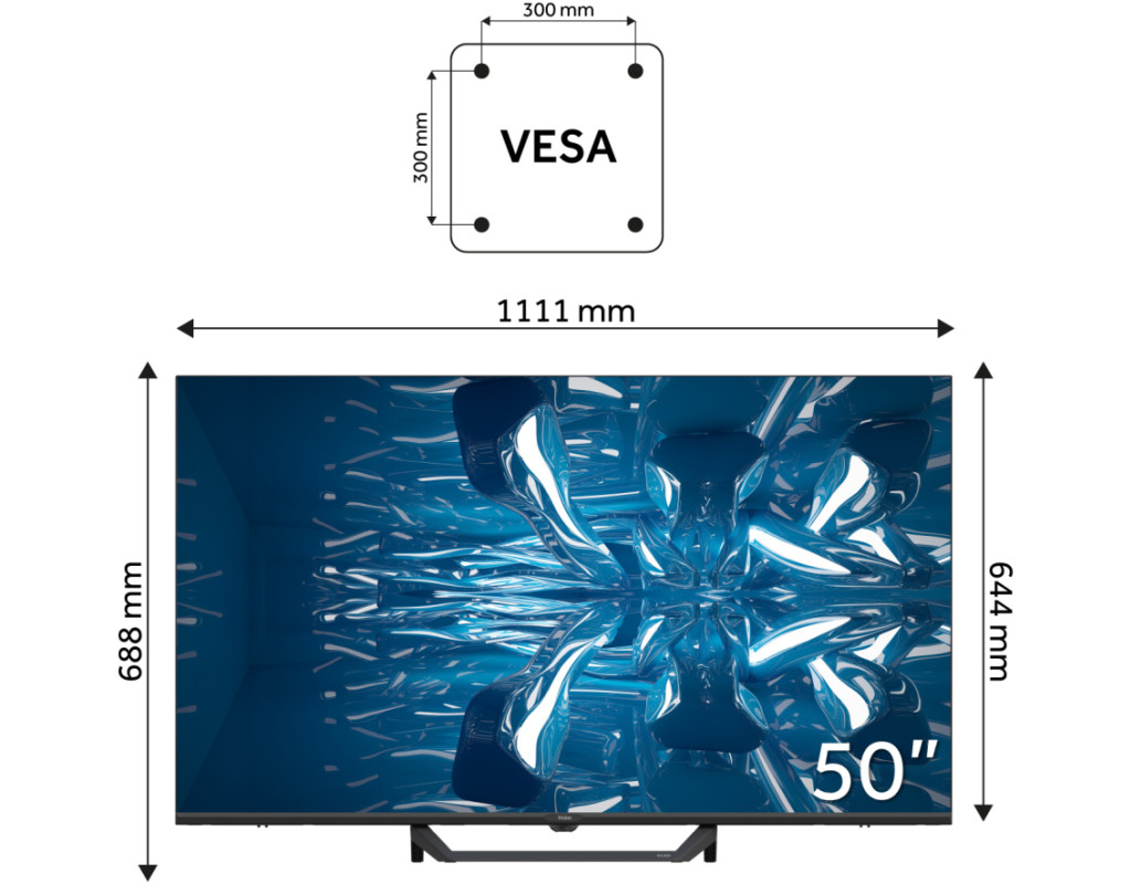 Smart TV, с Wi-Fi, QLED - телевизор, 4K-телевизоры, 50", 3840 x 2160, с HDR, цифровой DVB-T, цифровой DVB-C, цифровой DVB-S, цифровой DVB-T2, цифровой DVB-S2, 2 х 12 (24 Вт), 1 x цифровой аудио-выход, 1 x RJ-45, 2 x USB, CI, Аудиовыход, Composite, 4 x HDMI, Wi-Fi - есть, Поддержка Smart TV - есть, VESA - VESA (300x300 мм), 1111.2 х 688.6 х 277.2 мм, 9.3 кг