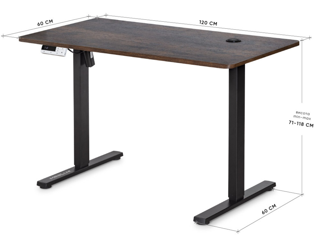 • Электрическая регулировка высоты (71–118 см) – благодаря мощному и тихому (до 50 дБ) электродвигателю вы сможете легко настроить высоту стола под свои нужды. Такой широкий диапазон позволяет комфортно работать как сидя, так и стоя, снижая нагрузку на спину, улучшая осанку и кровообращение.