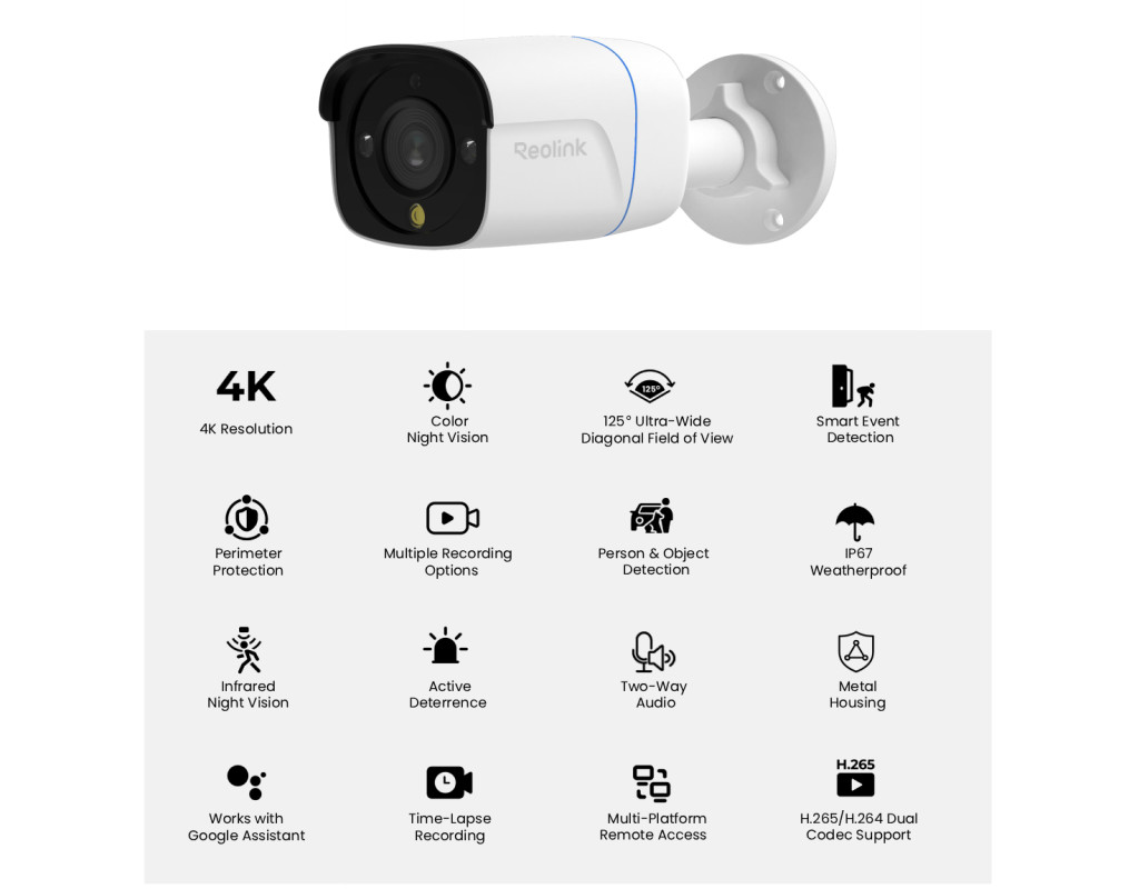 Умное обнаружение Система умного обнаружения точно идентифицирует широкий спектр целей, включая людей, транспортные средства, животных, немоторизованные транспортные средства и посылки. Она также может распознавать аномальные события, такие как удаление объекта и забытый объект, улучшая ситуационную информацию и реагирование безопасности. Защита периметра Reolink обеспечивает мощный уровень безопасности, точно контролируя определенные области. Он оснащен уведомлениями о пересечении линии для обнаружения движения через виртуальные границы, уведомлениями о вторжении в зону. Эти умные функции обеспечивают активное выявление угроз и более быстрое реагирование. Карта памяти microSD на 512 ГБ Поддерживает карту памяти microSD объемом до 512 ГБ, расширенное локальное хранение видео высокого разрешения без использования внешних устройств. Эта большая емкость позволяет дольше записывать и легко воспроизводить, обеспечивая надежную сохранность видео для повышенной безопасности. Несколько режимов освещения Оснащенная как инфракрасными светодиодами, так и прожекторами, камера предлагает гибкие варианты освещения. Она автоматически переключается в инфракрасный режим ночью для получения четких черно-белых изображений в условиях слабого освещения. Когда прожектор включен, она обеспечивает полноцветное ночное видение. Выберите один из трех режимов прожектора: «Всегда включено», «По тревоге» и «Выкл. вручную» — соответствие различным требованиям безопасности и обеспечение эффективного визуального сдерживания. Прочная и всепогодная конструкция Созданная для использования на открытом воздухе камера имеет корпус со стандартом IP67 для полной защиты от пыли и воды. Она надежно работает при экстремальных температурах от -30°C до +55°C, что делает ее идеальной для суровых условий. Прочный металлический корпус повышает долговечность и ударопрочность, обеспечивая долговременную стабильность и надежную работу при любых погодных условиях. |