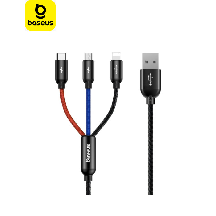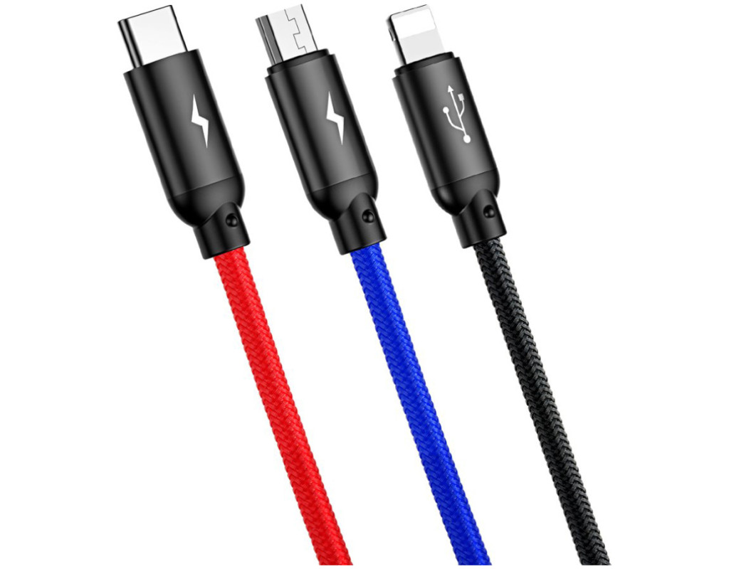| Baseus Three Primary Colors 3-in-1 — кабель для зарядки и передачи данных с мультиинтерфейсом. Основные характеристики: