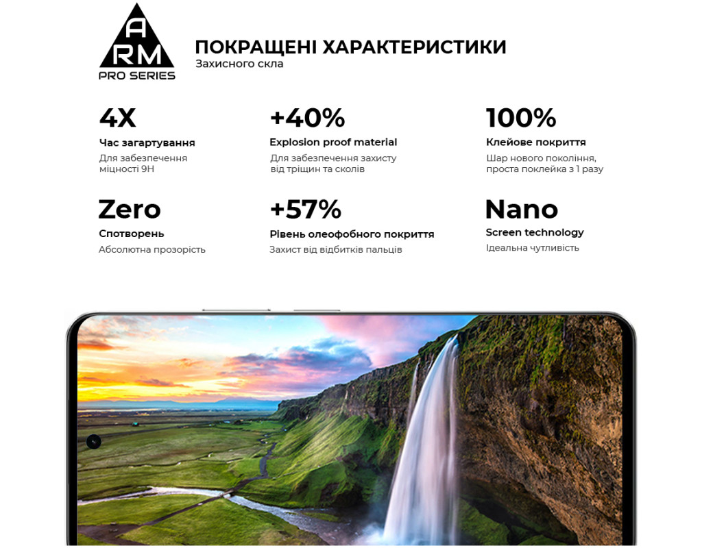 Защитное стекло Armorstandart Pro Series – это совершенно новый уровень защиты дисплея смартфона. В производстве используется материал Japenese Asahi Glass, который проходит закалку в течение 4 часов. Это обеспечивает идеальную прозрачность защитного покрытия без искажений изображения, а также мощную защиту от трещин и царапин. Стекло никак не влияет на отзывчивость тачскрина. В нем содержится специальный материал, препятствующий появлению сколов. Верхняя часть стекла содержит улучшенное олеофобное и гидрофобное покрытие. При использовании стекла это обеспечивает естественные тактильные ощущения – пальцы легко скользят по поверхности. В то же время изображение отражается с аутентичной яркостью и четкостью без искажений. Задняя часть по всей площади покрыта клеевой основой нового поколения. Благодаря этому достигается полная нехватка пузырьков и возможность переклеивания стекла при первоначальной неровной установке. Защитное стекло Armorstandart Pro Series обладает оптимальными габаритами и толщиной на 0,3 мм. Предусмотрены вырезы под датчики, камеры и разъемы. В комплект входит все необходимое для быстрой и комфортной установки. Особенности: