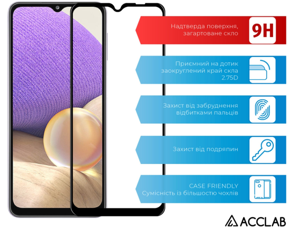 Стекло защитное ACCLAB Full Glue Samsung A32 Black (1283126510533)